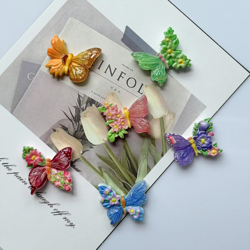跨境新款树脂diy冰箱贴创意可爱卡通仿真蝴蝶系列家居厨房装饰磁