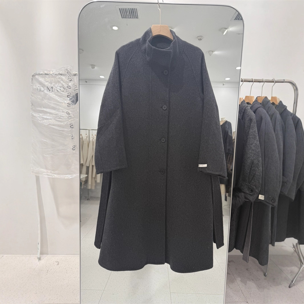立领双面呢羊毛大衣女长款秋冬新款设计感韩版宽松加厚纯色外套