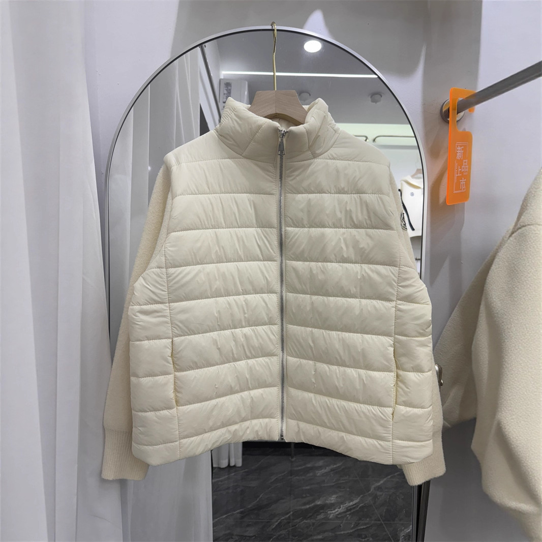欧韩系秋冬新款轻薄针织拼接羽绒棉服开衫设计感开衫立领外套跨境
