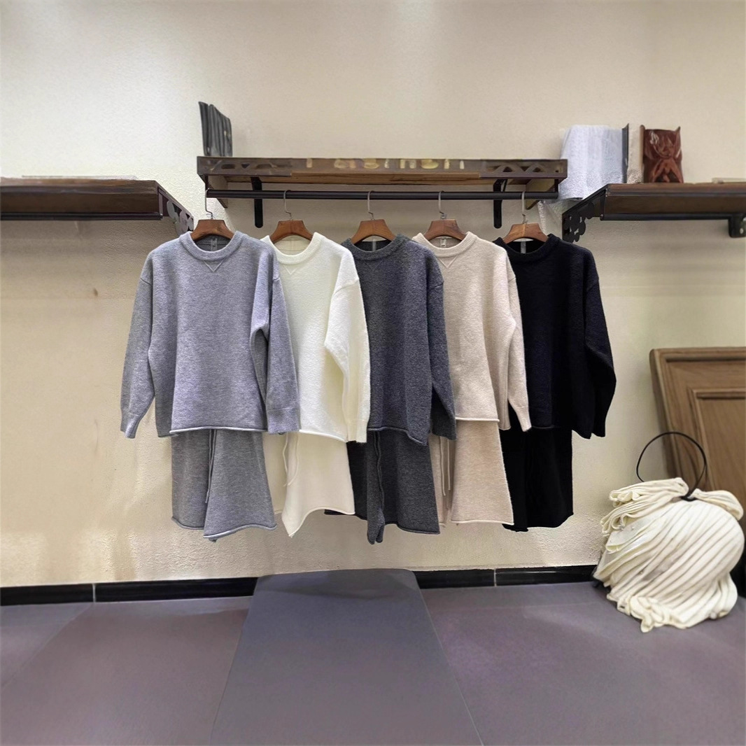 博主推荐爆款批发初秋宽松慵懒风圆领毛衣高腰短裤针织套装女韩系