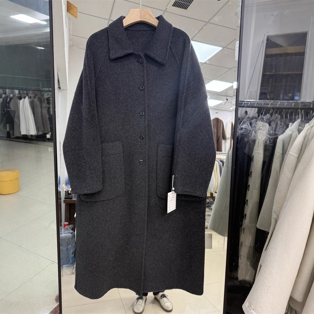 韩国东大门跨境严选秋冬季长款双面羊毛大衣设计感毛呢外套女装