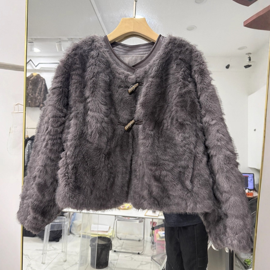 東南アジアの秋冬用婦人服ニットコート、イミテーションミンクベルベットのショート丈トップス、カジュアルでシンプルな配色デザイン