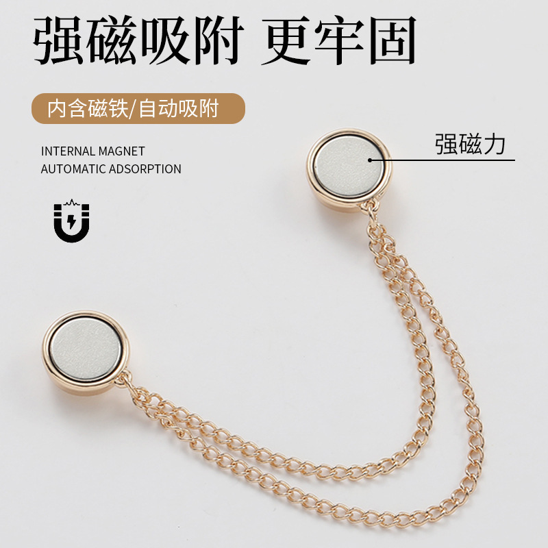 チェーンマグネットバックルのズボンの裾を固定します。ズボンの裾のズボンの長さを短くします。