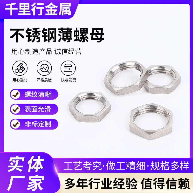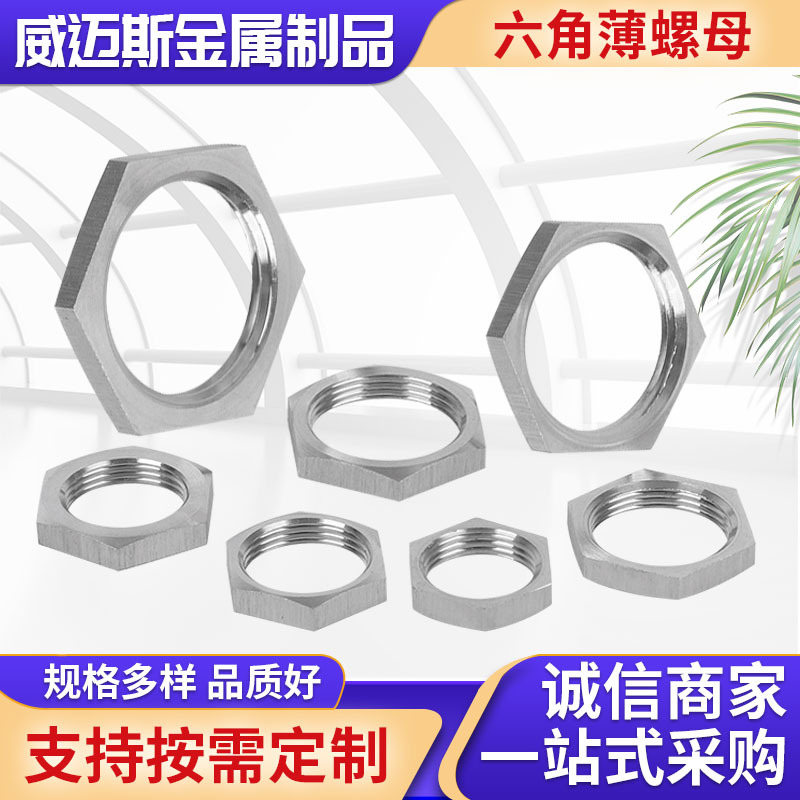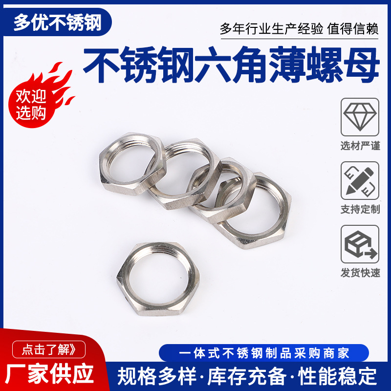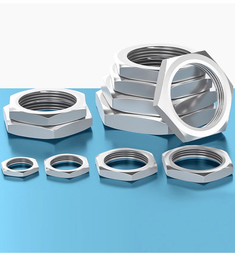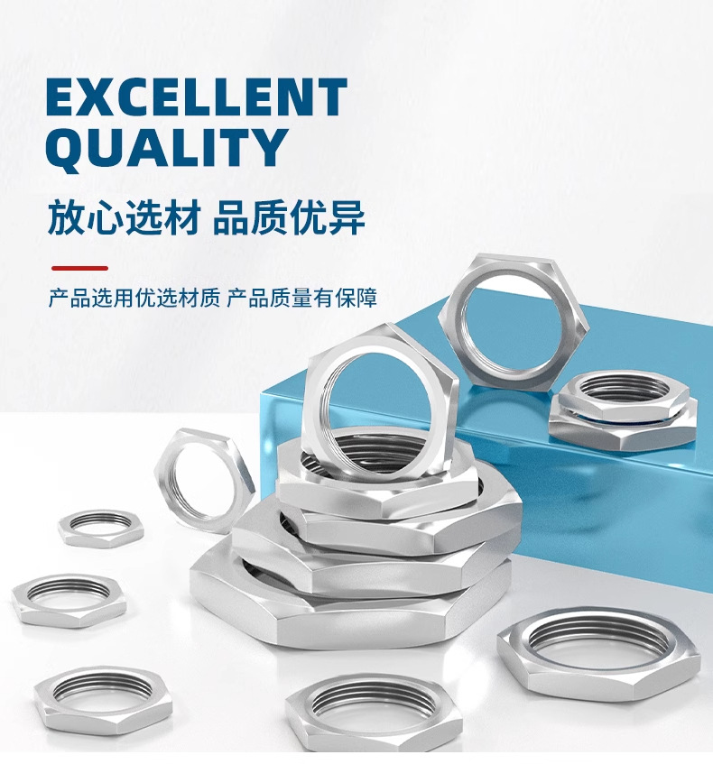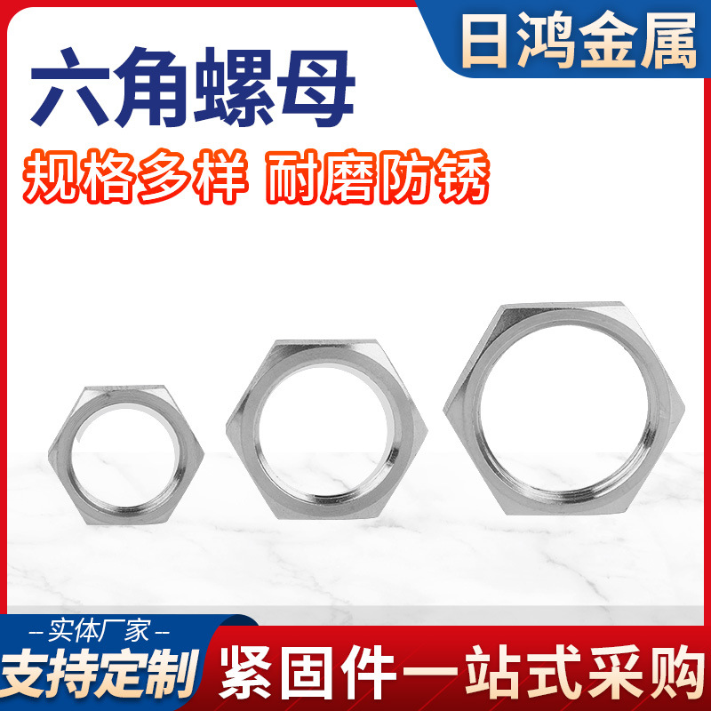 304不锈钢六角根母锁紧螺母水管并帽六角螺母螺帽薄型螺母