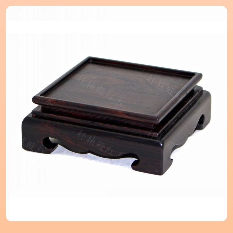 ⇖ 無垢材の正方形の小さな台座、マホガニーの印鑑、翡翠の印章の台座、黒と赤の白檀の翡翠工芸品の装飾品、木製の台座