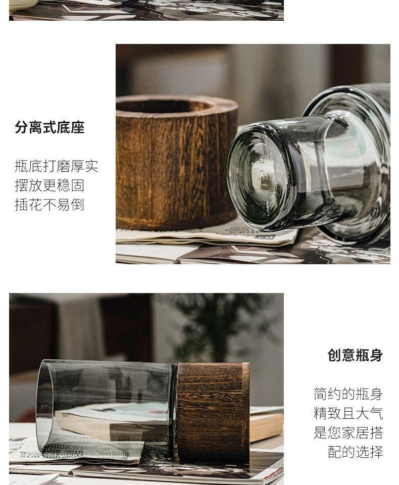 シンプルな創意木托ガラス花瓶原木台座客間食卓水培富貴竹大花瓶客間装