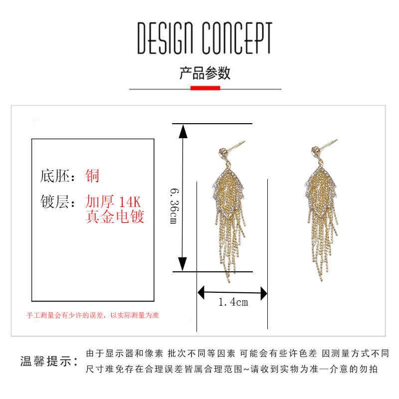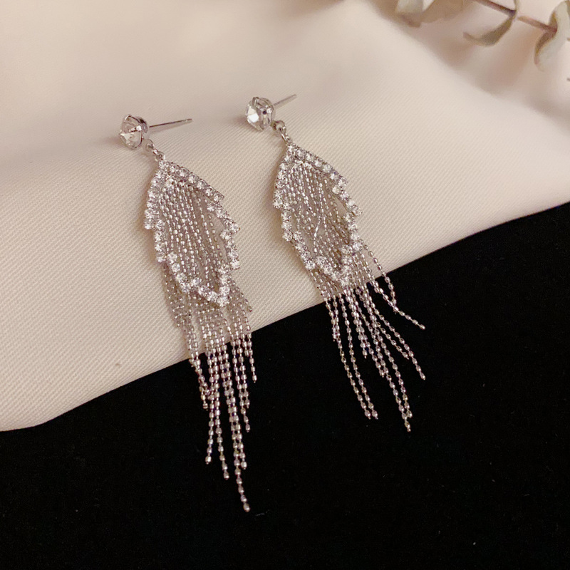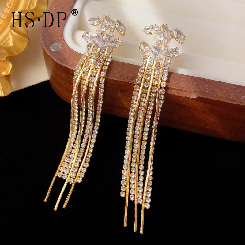 軽豪華なファッションジルコン水滴流蘇耳フックファッション気質洗練された高級感のあるロングタイプのデザイン感のあるイヤリング
