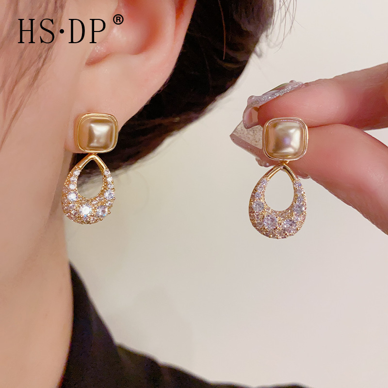 韓国版洗練されたファッション名媛優雅な大気ジルコン真珠耳輪女s925銀針高品質イヤリング卸売り