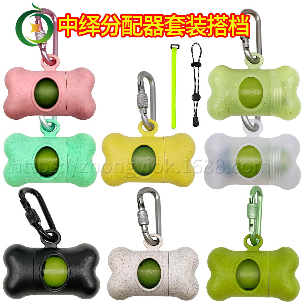 全降解可堆肥宠物垃圾袋秸秆骨头分配器套装透明金粉夜光分配器厂