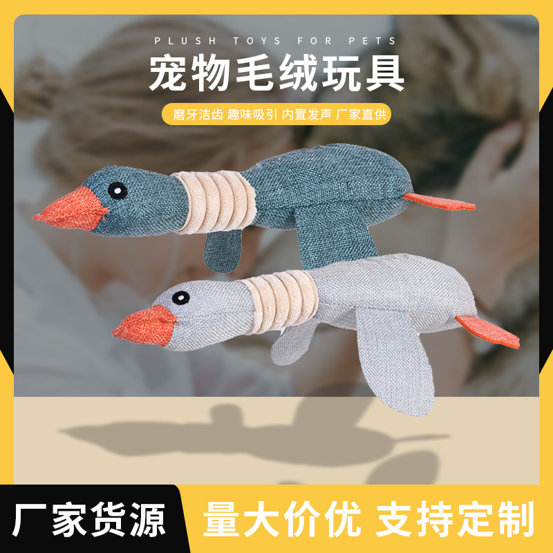 アマゾンの新しいペットの鳴る犬のおもちゃ黄麻布シミュレーション雁の歯ぎしり耐性咬傷動物ぬいぐるみ卸売