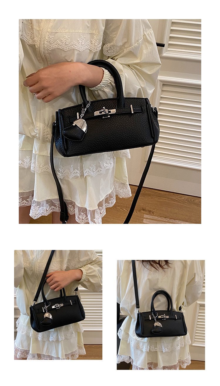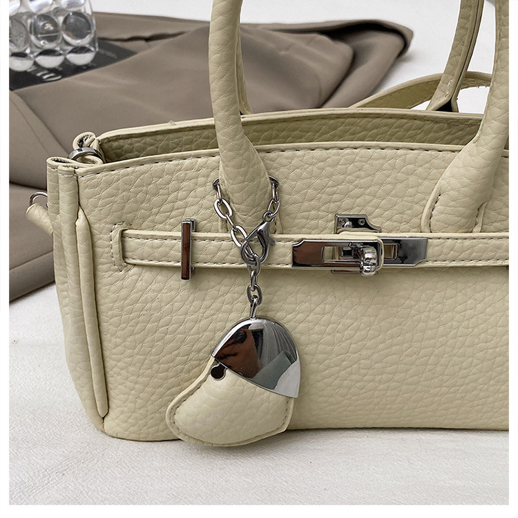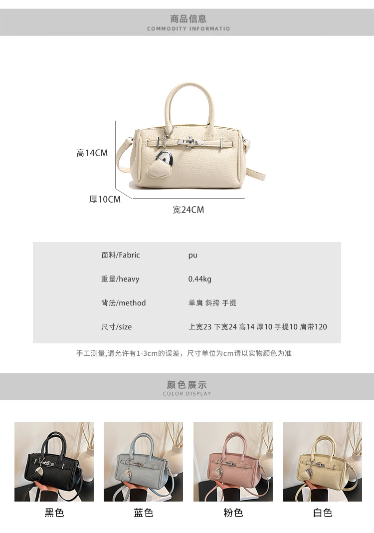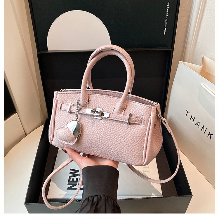 2025新款包包女时尚休闲百搭凯莉包荔枝纹铂金包手提单肩斜挎包潮