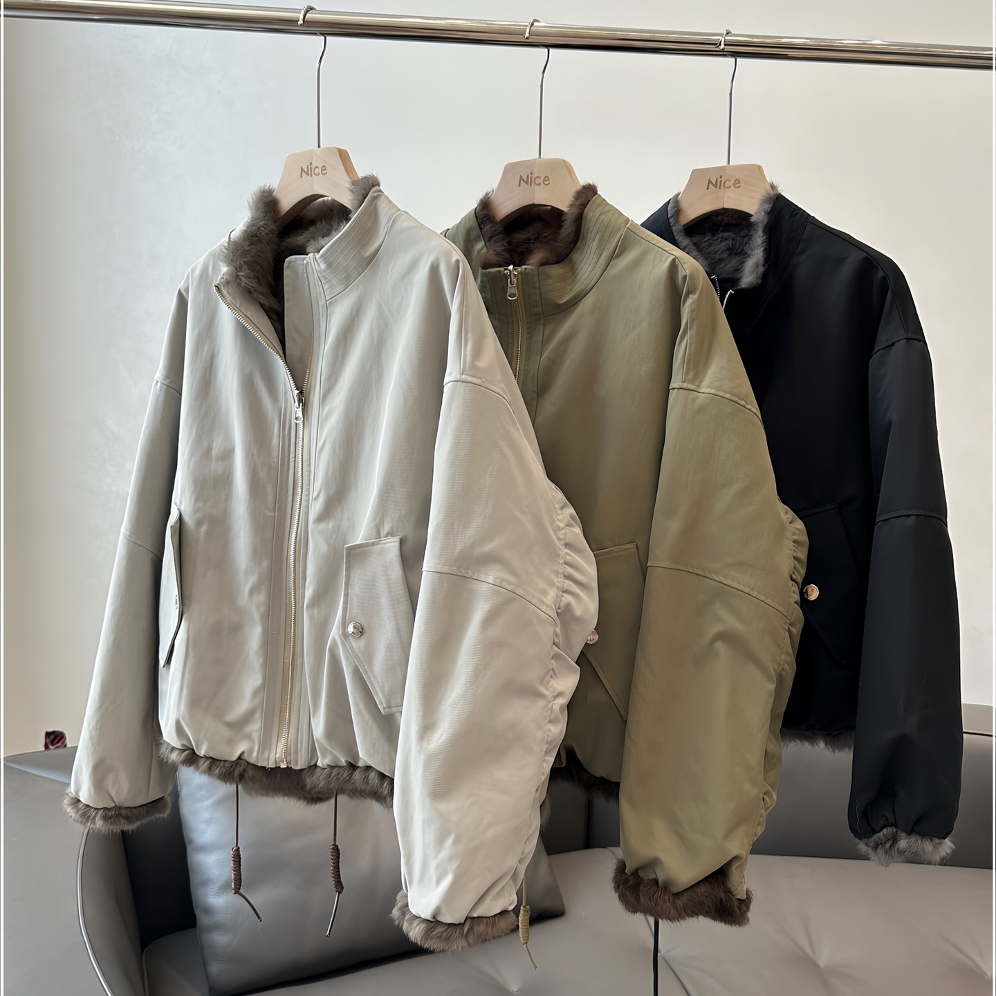 2025新款冬季进口整皮兔毛皮草皮毛一体两面穿年轻款休闲派克服女