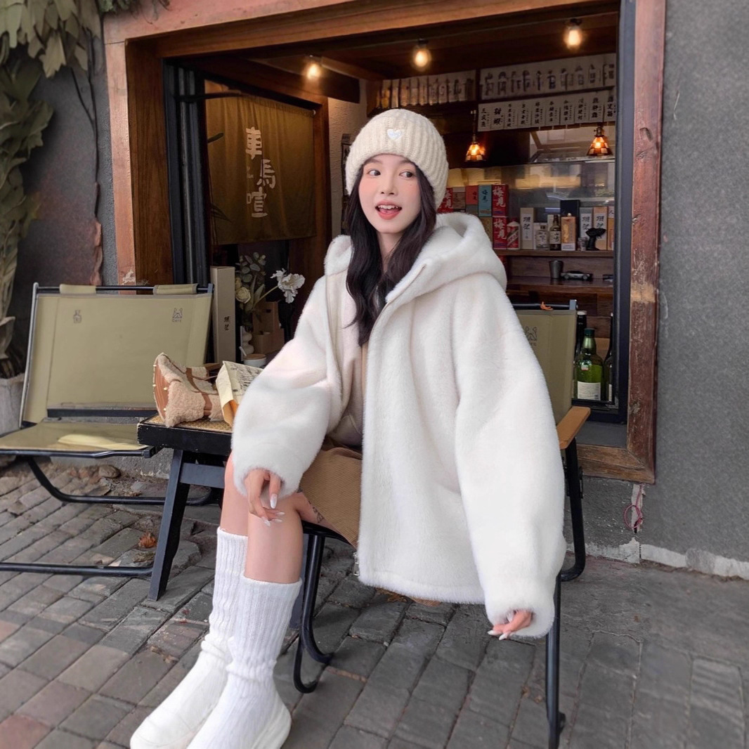 2025秋冬新款皮毛一体仿水貂毛绒外套女连帽环保皮草毛毛大衣加厚