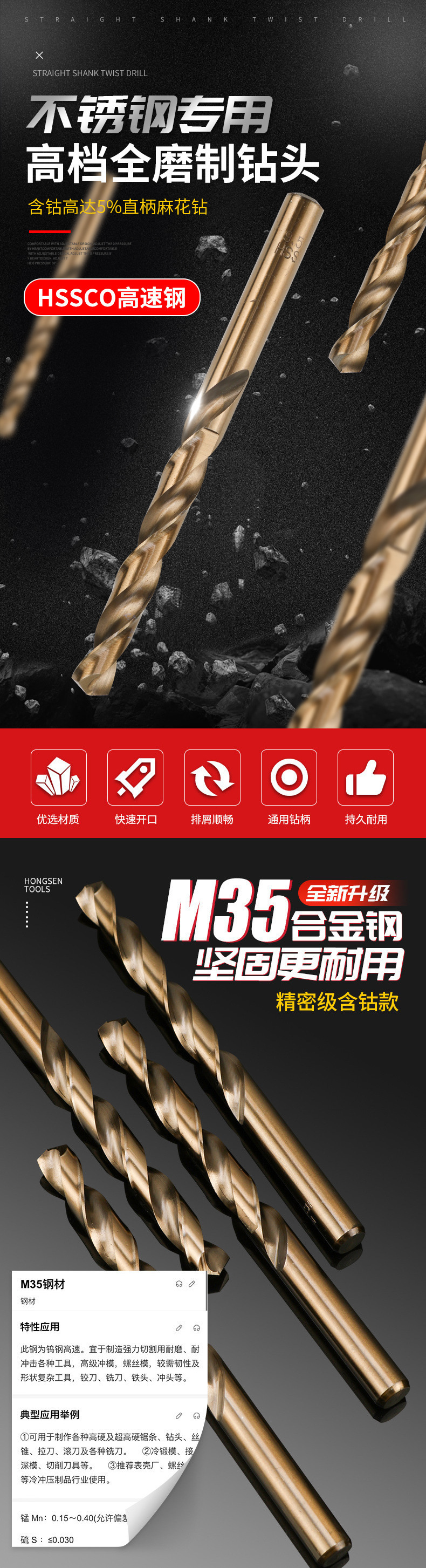 含钴M35磨制麻花钻头不锈钢钻头高速钢麻花钻麻花钻头 11mm