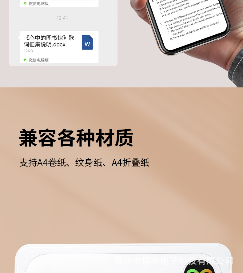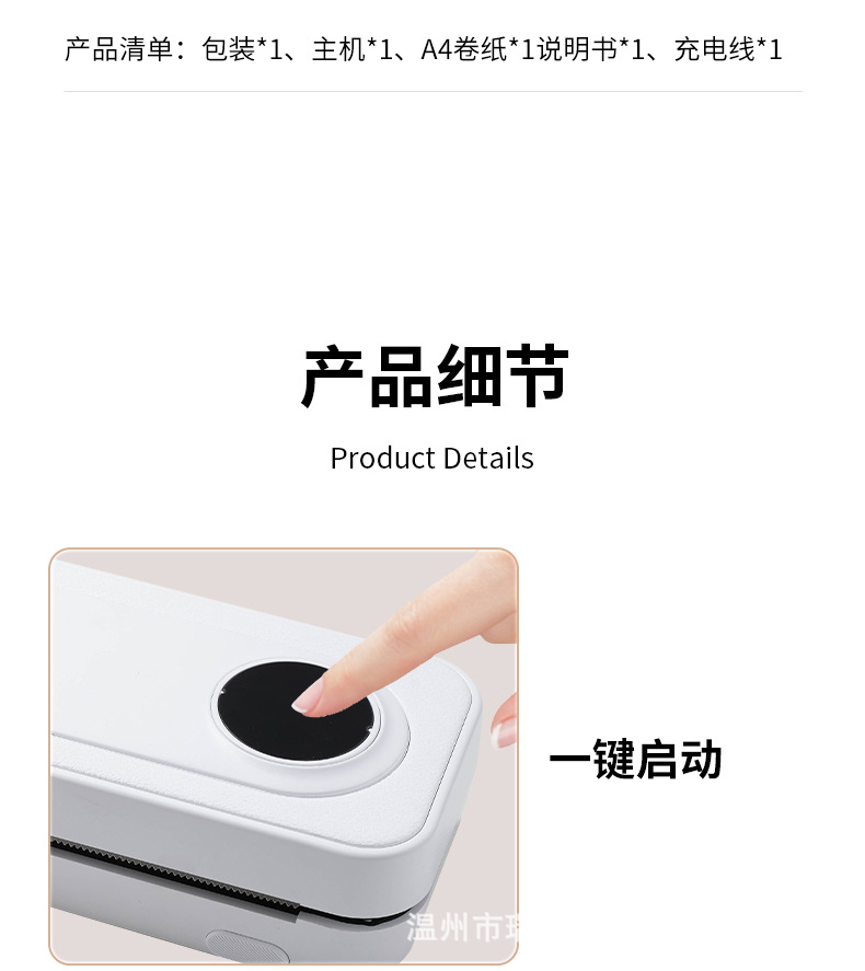 クロスボーダー A4 サーマルプリンタ インクレスタトゥー ミニポータブル Bluetooth 間違いの質問文書 宿題写真 オフィス印刷