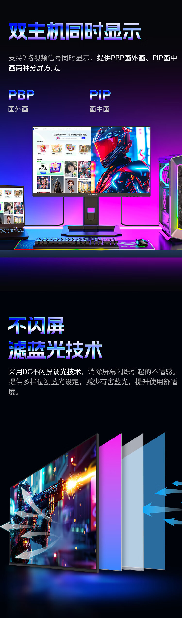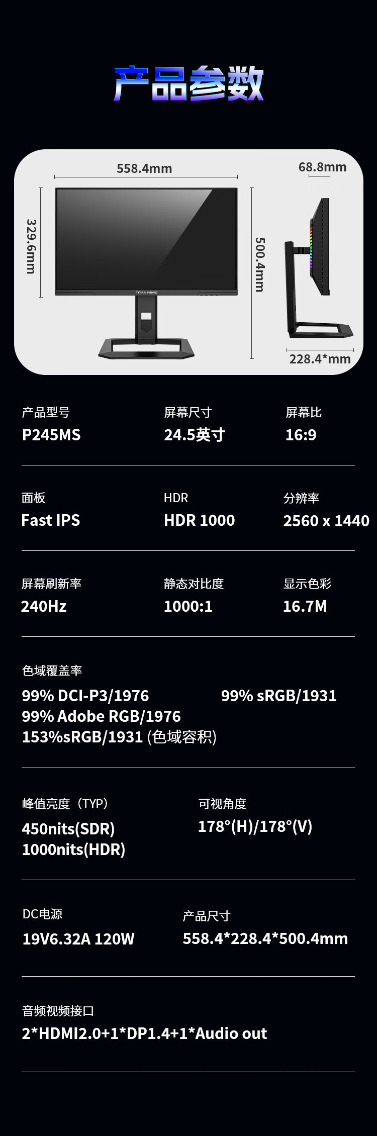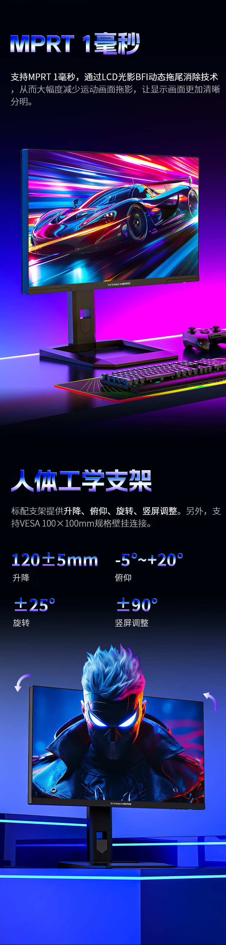 タイタン軍団p245ms24インチ2k 240hz回転昇降オフィス電気競争液晶ディスプレイ