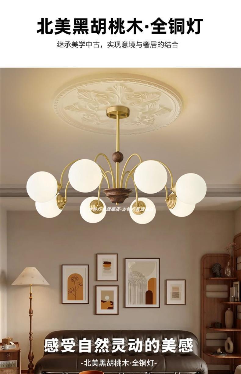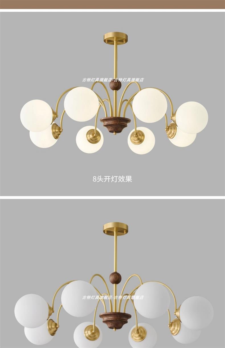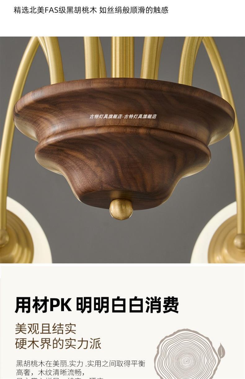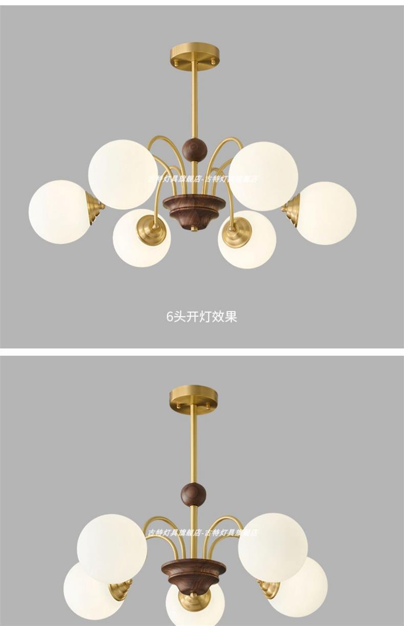 全銅アメリカンミッドセンチュリーフレンチレトロリビングルームシャンデリア北米ブラックウォールナット寝室レストラン無垢材マジックビーンランプ