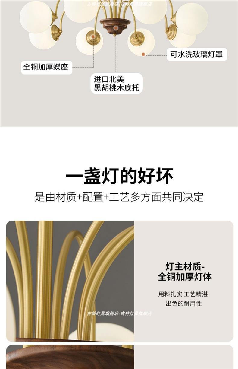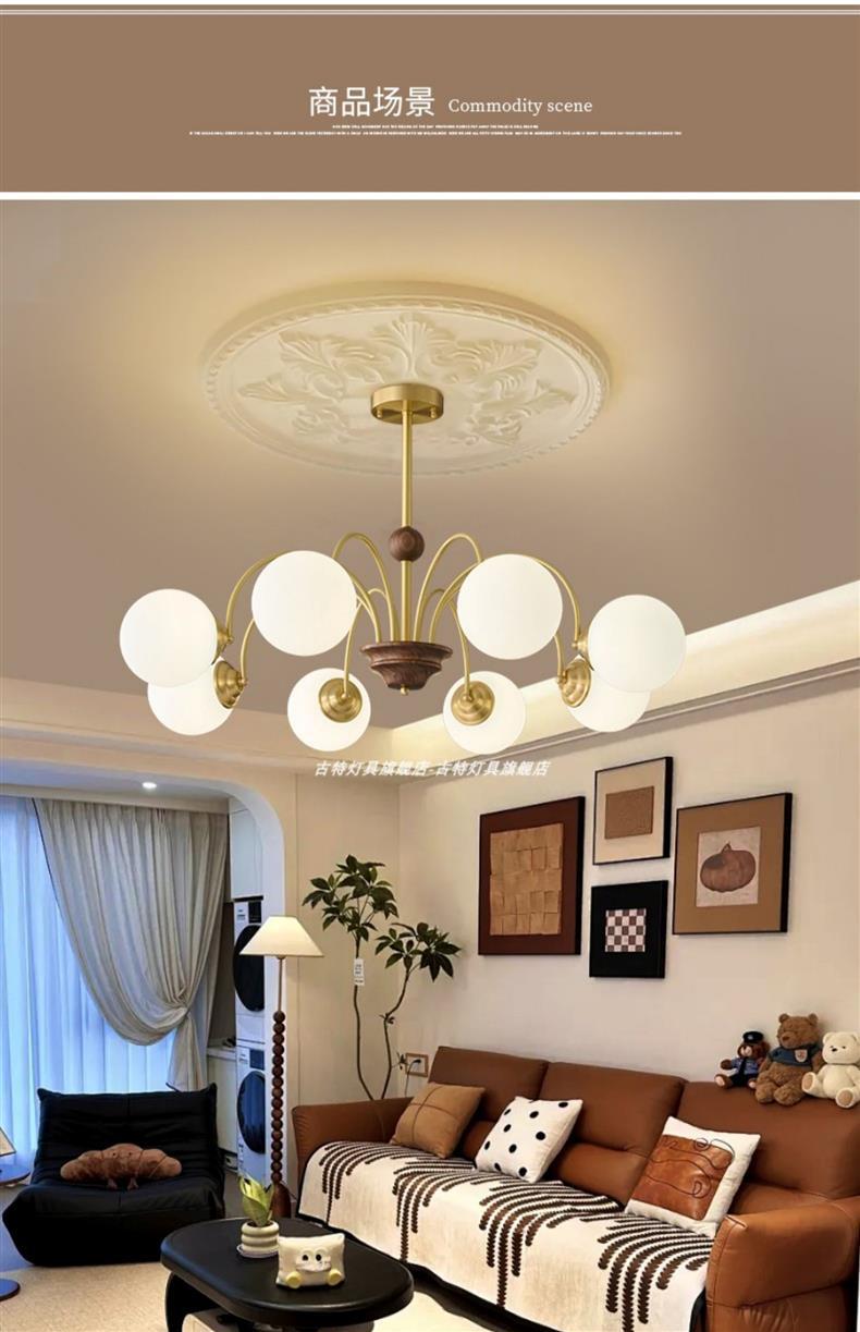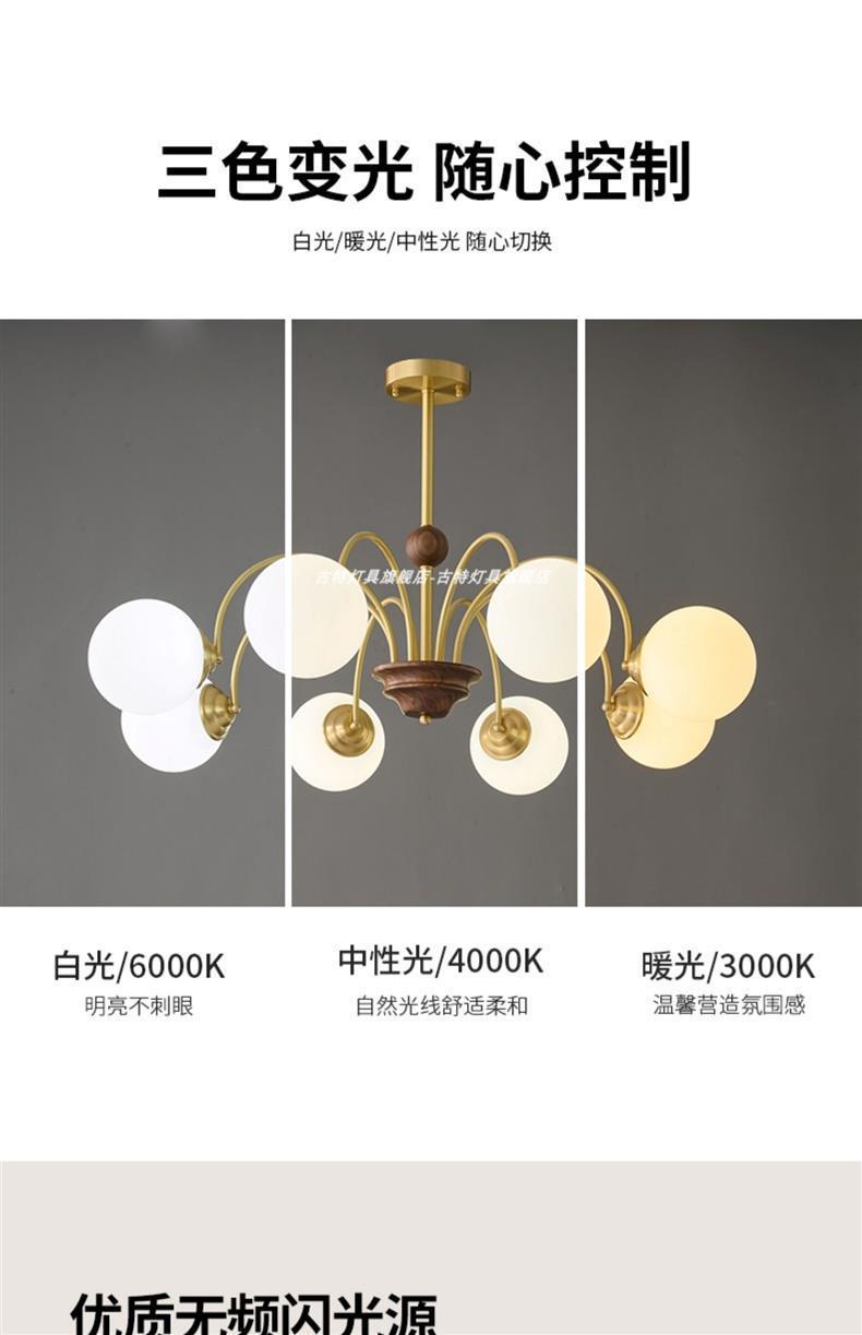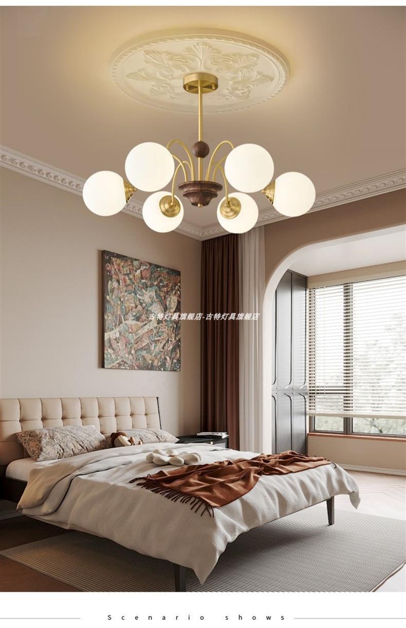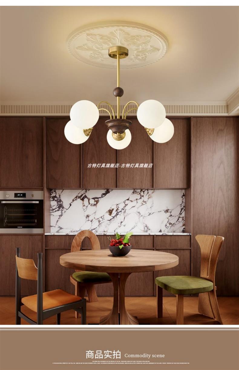 全銅アメリカンミッドセンチュリーフレンチレトロリビングルームシャンデリア北米ブラックウォールナット寝室レストラン無垢材マジックビーンランプ