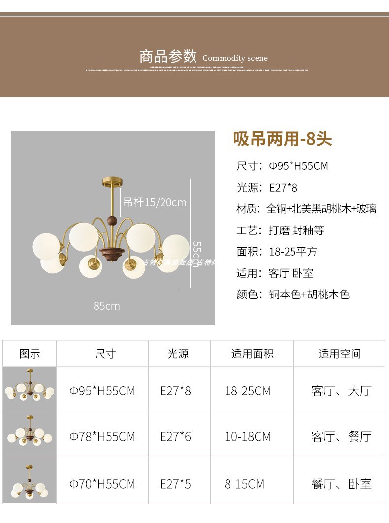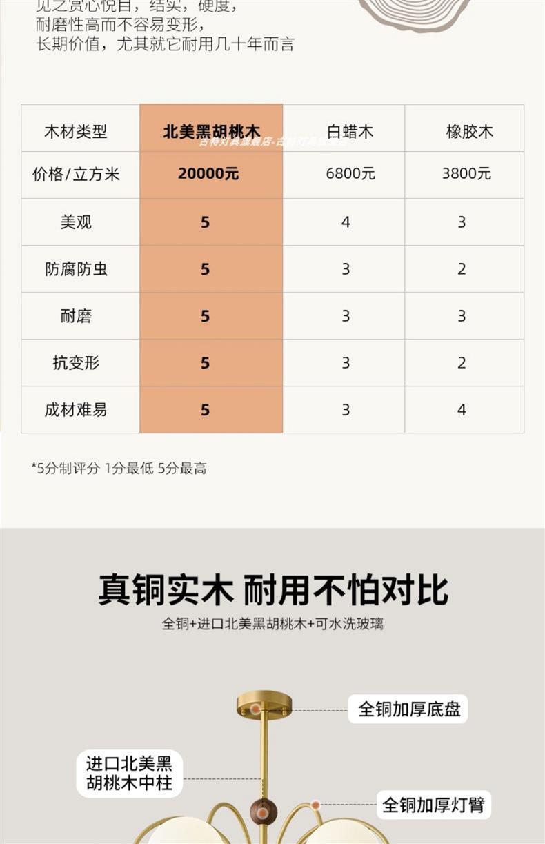 ライトの色 【全銅+北米産ブラックウォールナット丸太】5灯ヘッド直径70*高さ55CM高CRI保護,【全銅+北米産ブラックウォールナット丸太】ランプホルダー6個 直径78*高さ55CM 高CRI保護,【全銅+北米産ブラックウォールナット丸太】ランプホルダー8個 直径95*高さ55CM 高CRI保護