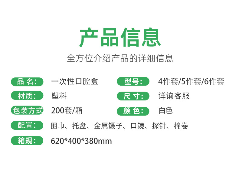 医用牙科材料口腔耗材一次性使用口腔包无菌检查牙齿护理器械盒