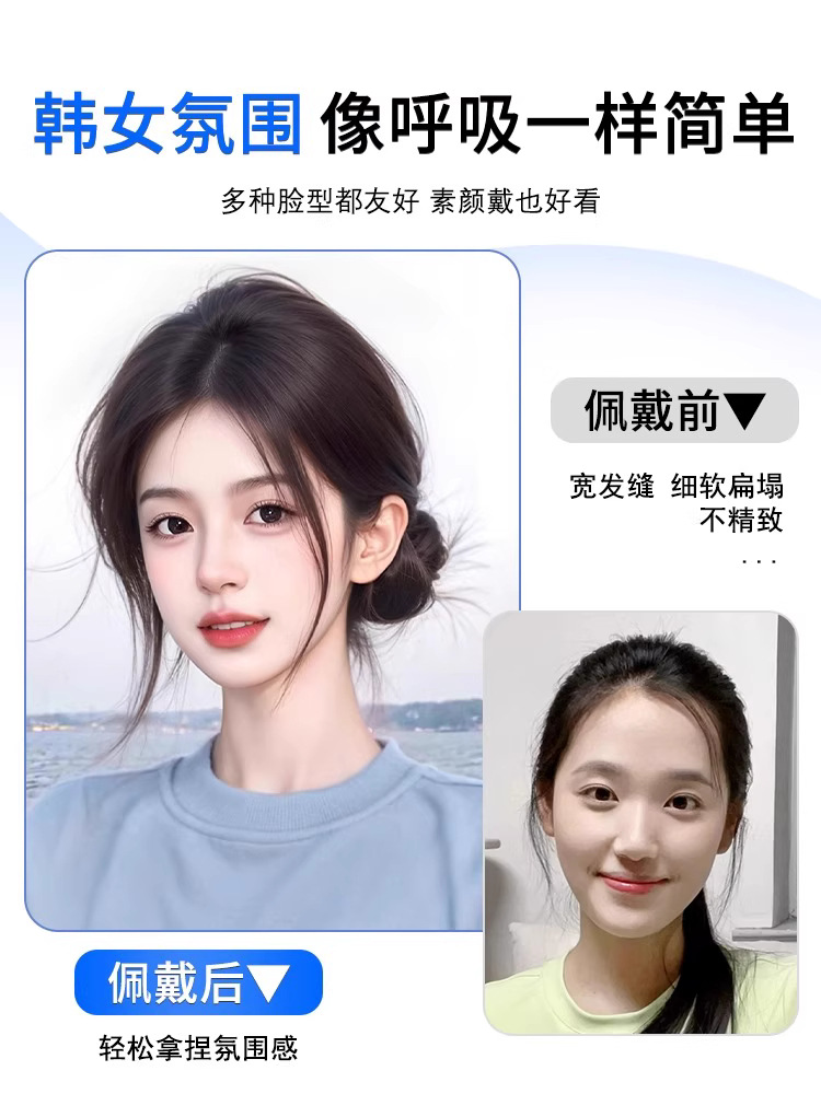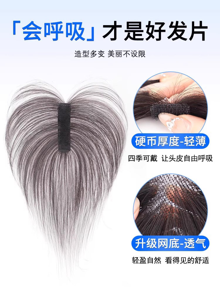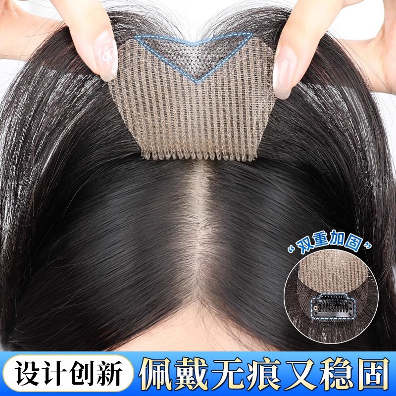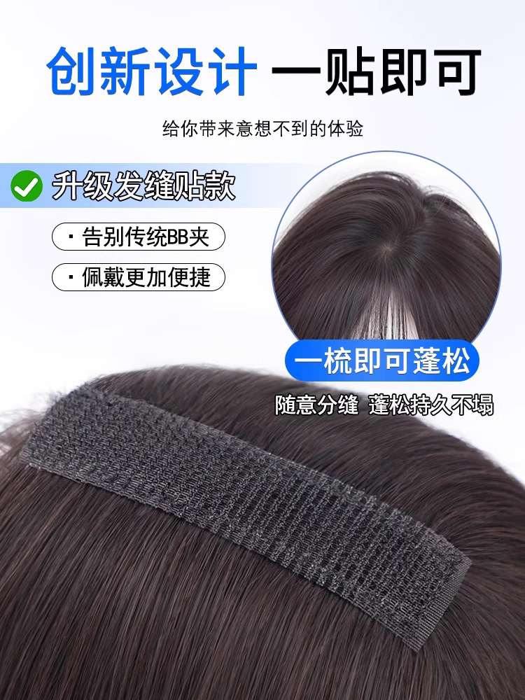 假发片女头顶补发增发量前额魔术贴仿真发遮白发轻薄无痕刘海假发