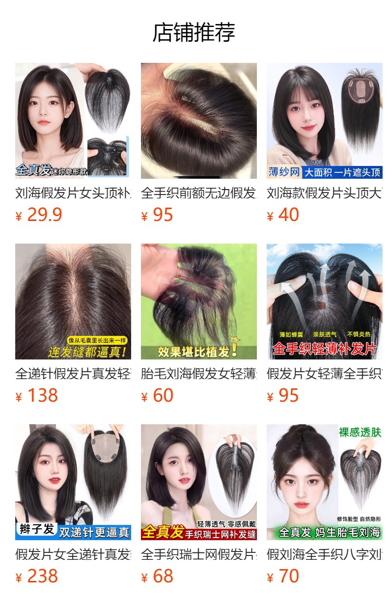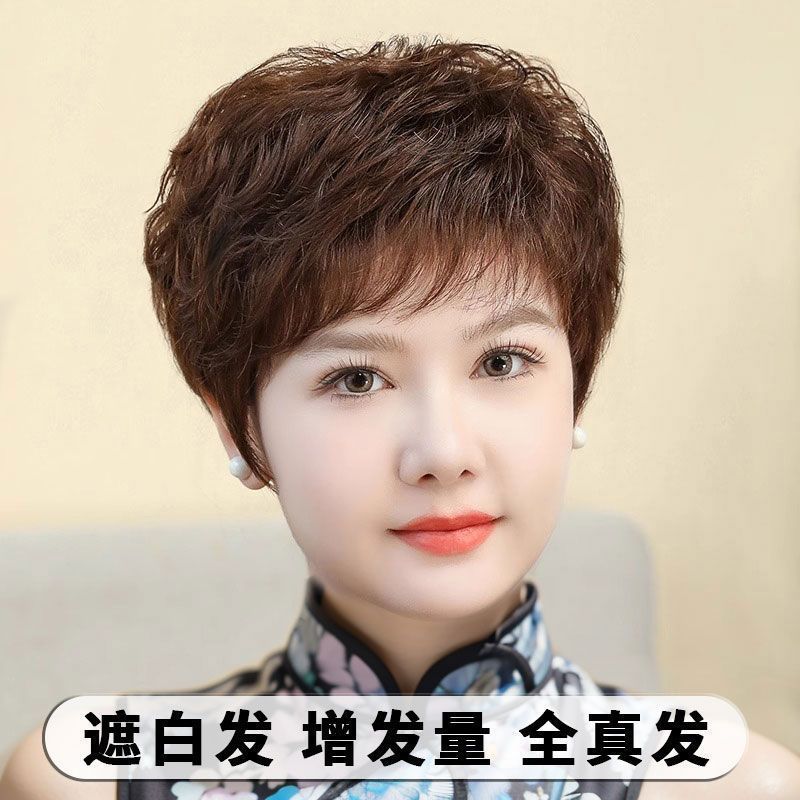頭の上でかつらを再発行します。女性の許昌かつらは本当に白髪の増発量をカバーします。