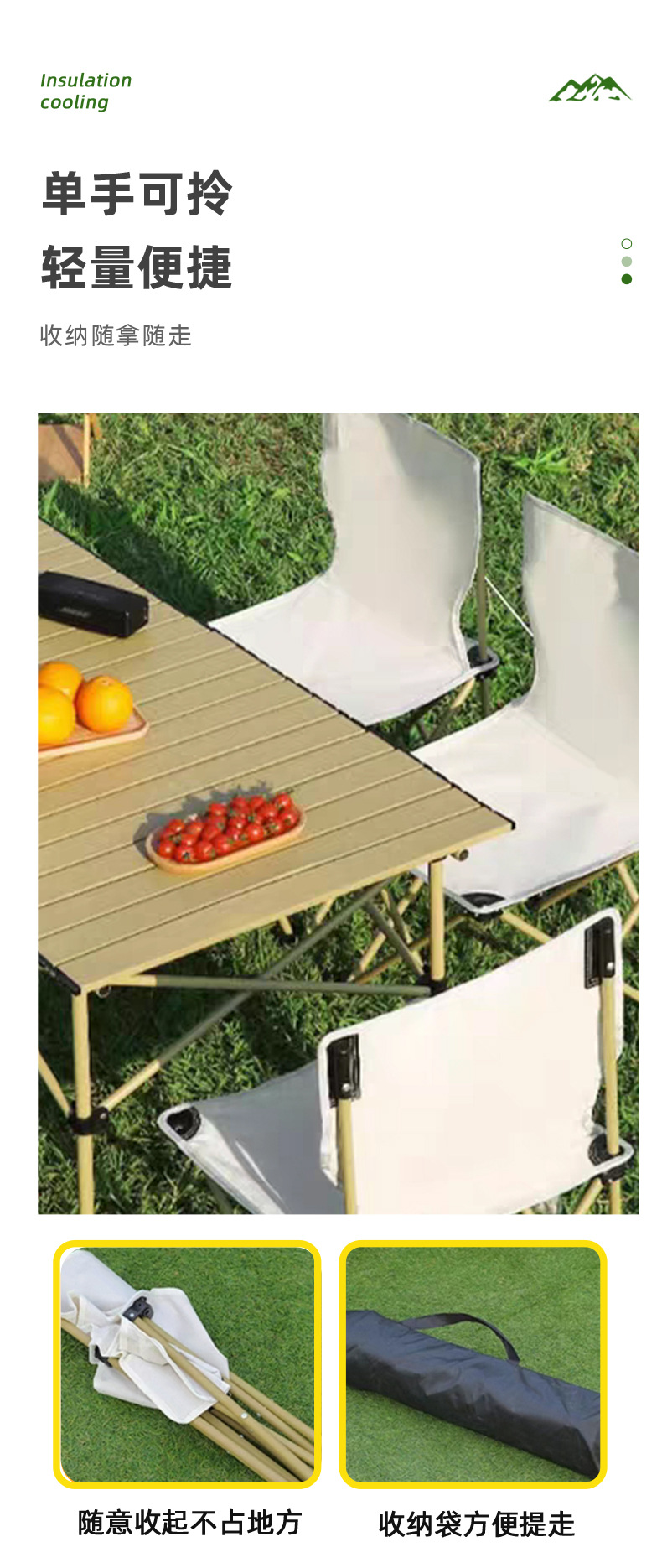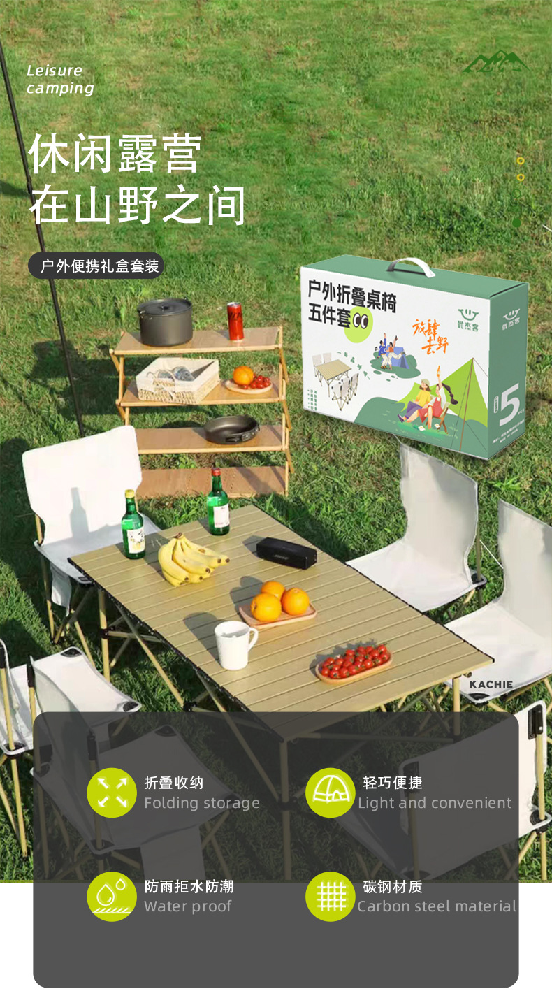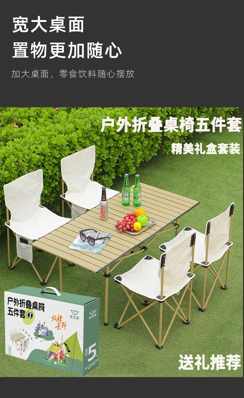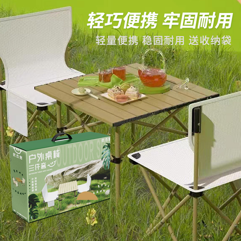 屋外折りたたみテーブルと椅子ポータブルキャンプピクニックエッグロールテーブル折りたたみ椅子 3 点セットギフトボックスセットギフト卸売