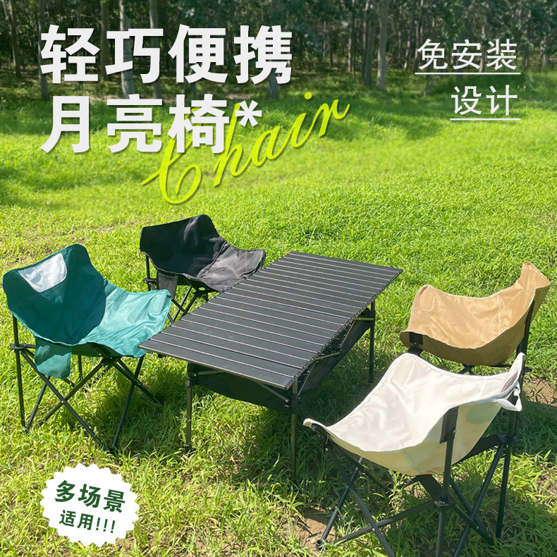 屋外折りたたみキャンプテーブルと椅子セットポータブルムーンチェアエッグロールテーブルバーベキューストールテーブルピクニック折りたたみテーブルと椅子