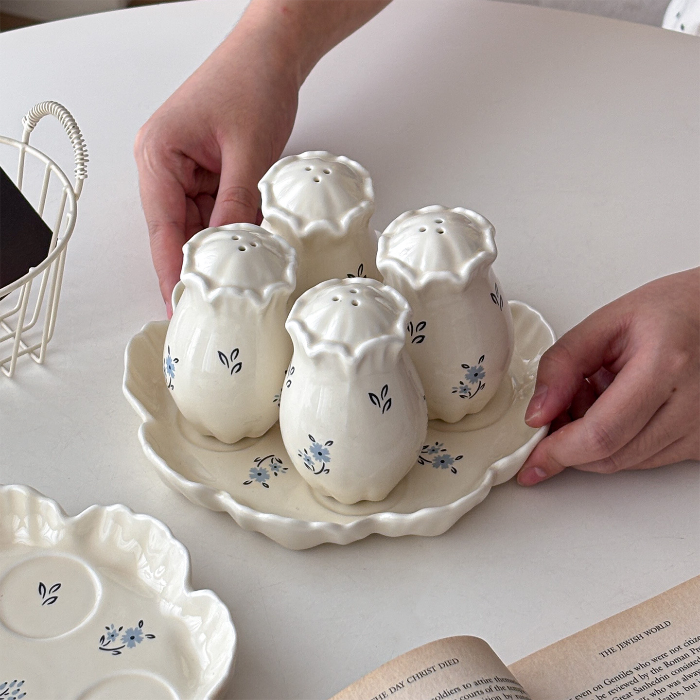 穆尼法式奶油风碎花调料瓶陶瓷托盘厨房用品装饰餐桌摆件三孔调味