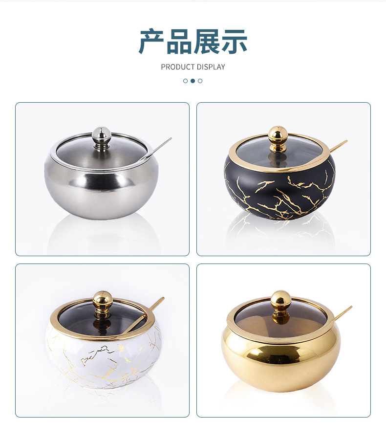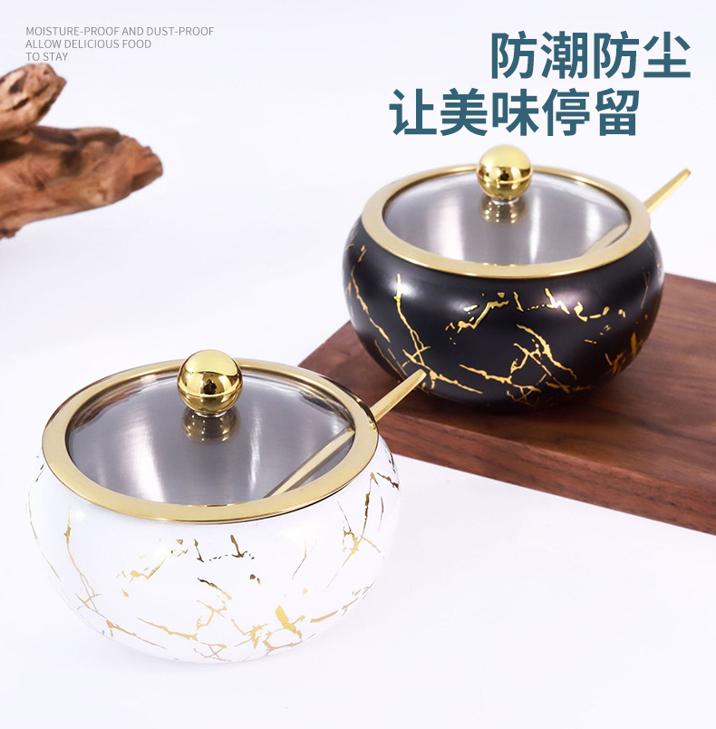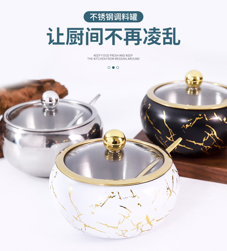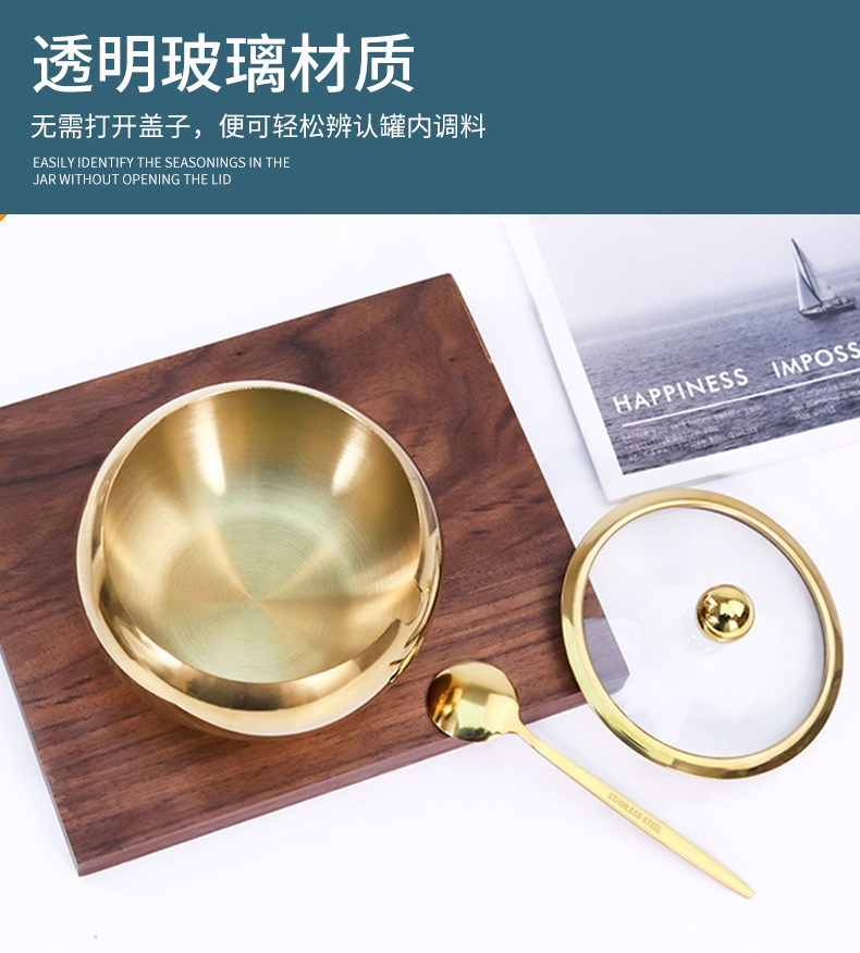 不锈钢调味罐调料罐创意厨房用品糖罐盐盅可视玻璃盖配套勺彩色罐