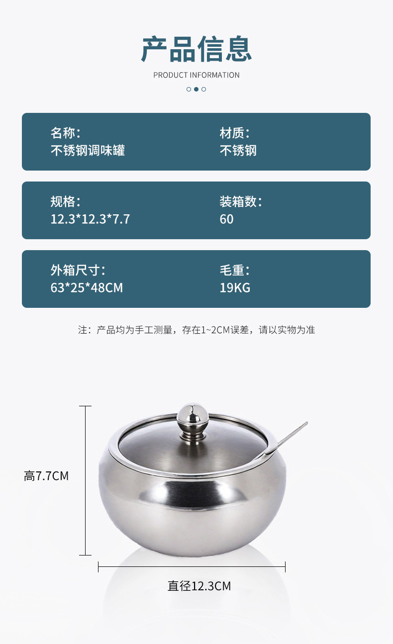 加厚不锈钢调味罐 大容量厨房用品调味料收纳盒 糖罐调料罐套装