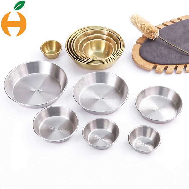304ステンレスの銀色の金色の軽食の皿の調味料の碗の調味料の皿の商用家庭の通用するスーツは携帯します。