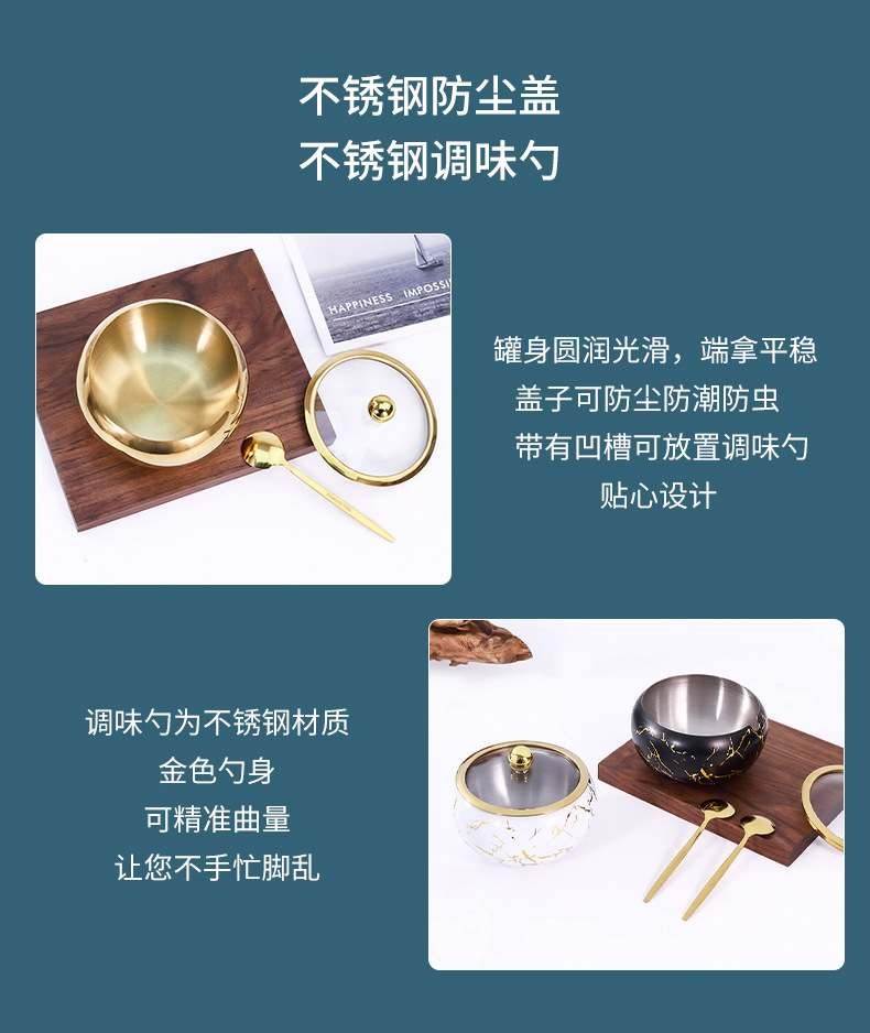 轻奢不锈钢调味罐带盖创意厨房用品收纳盒家用味精盐糖调料罐套装