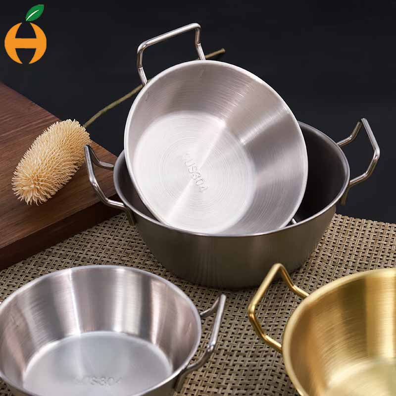 304ステンレスの米酒の碗の双耳の取っ手の韓国式の料理の碗の調味料の軽食の碗の金の銀色の304碗の韓国式