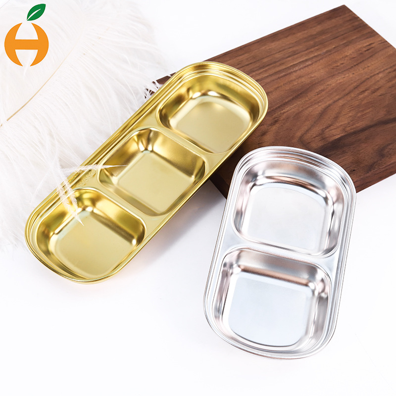 韓国風調味料皿304ステンレス多格金色二三格鍋調味料皿醤油皿焼肉皿
