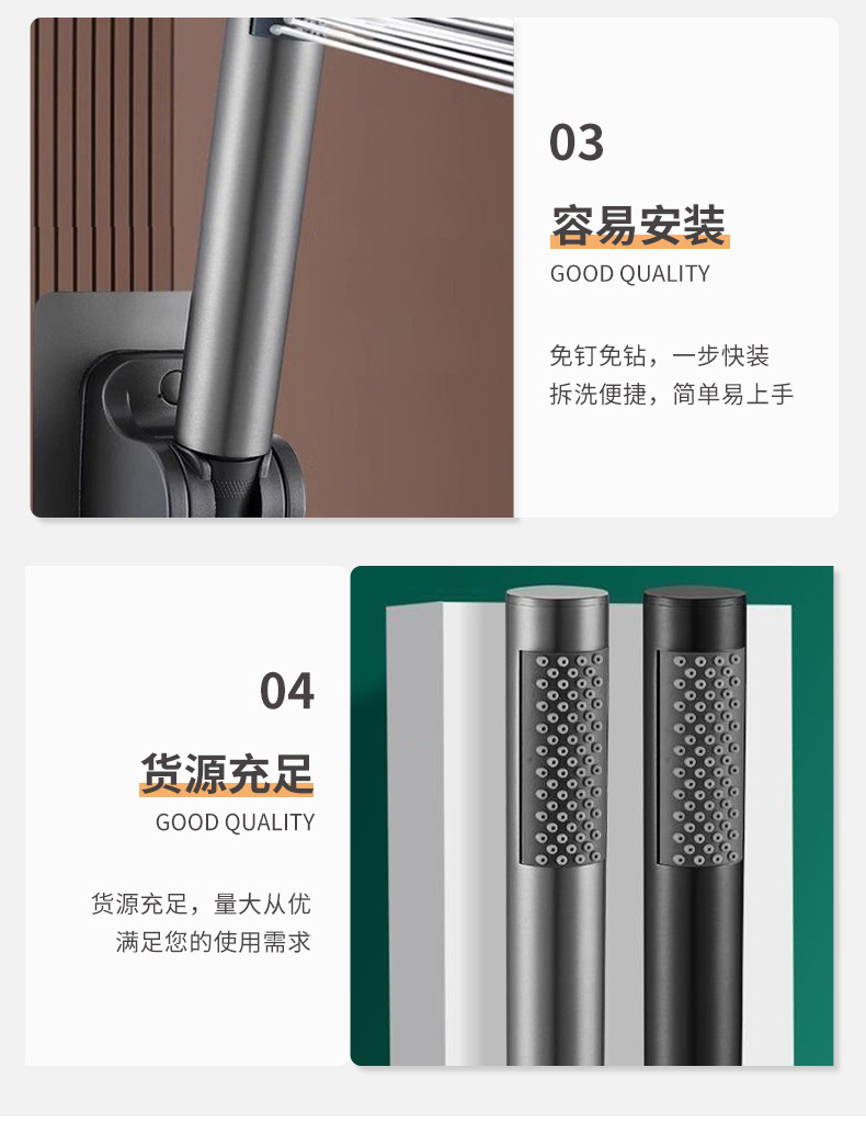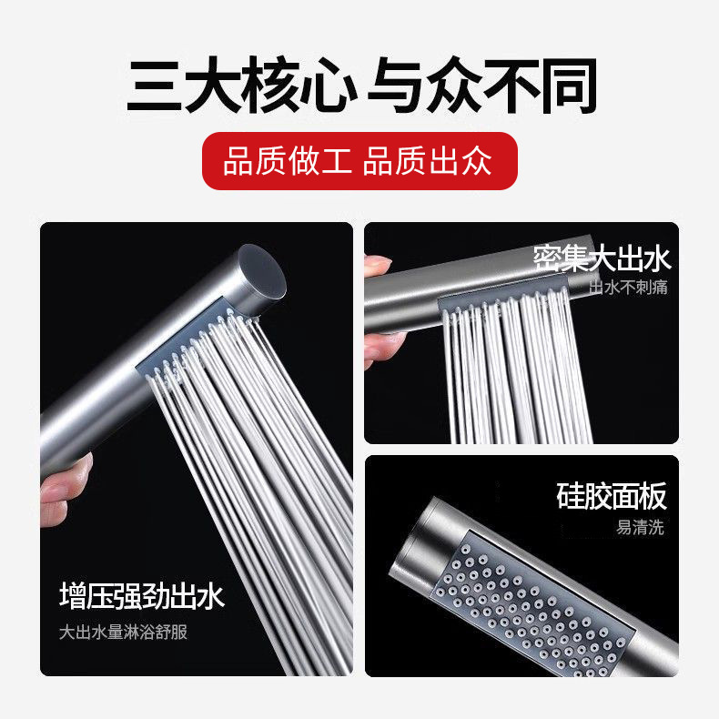 ハンドヘルドシャワーヘッド 304 ステンレス鋼ガングレー加圧シャワーヘッド加圧浴室シャワーヘッドセット