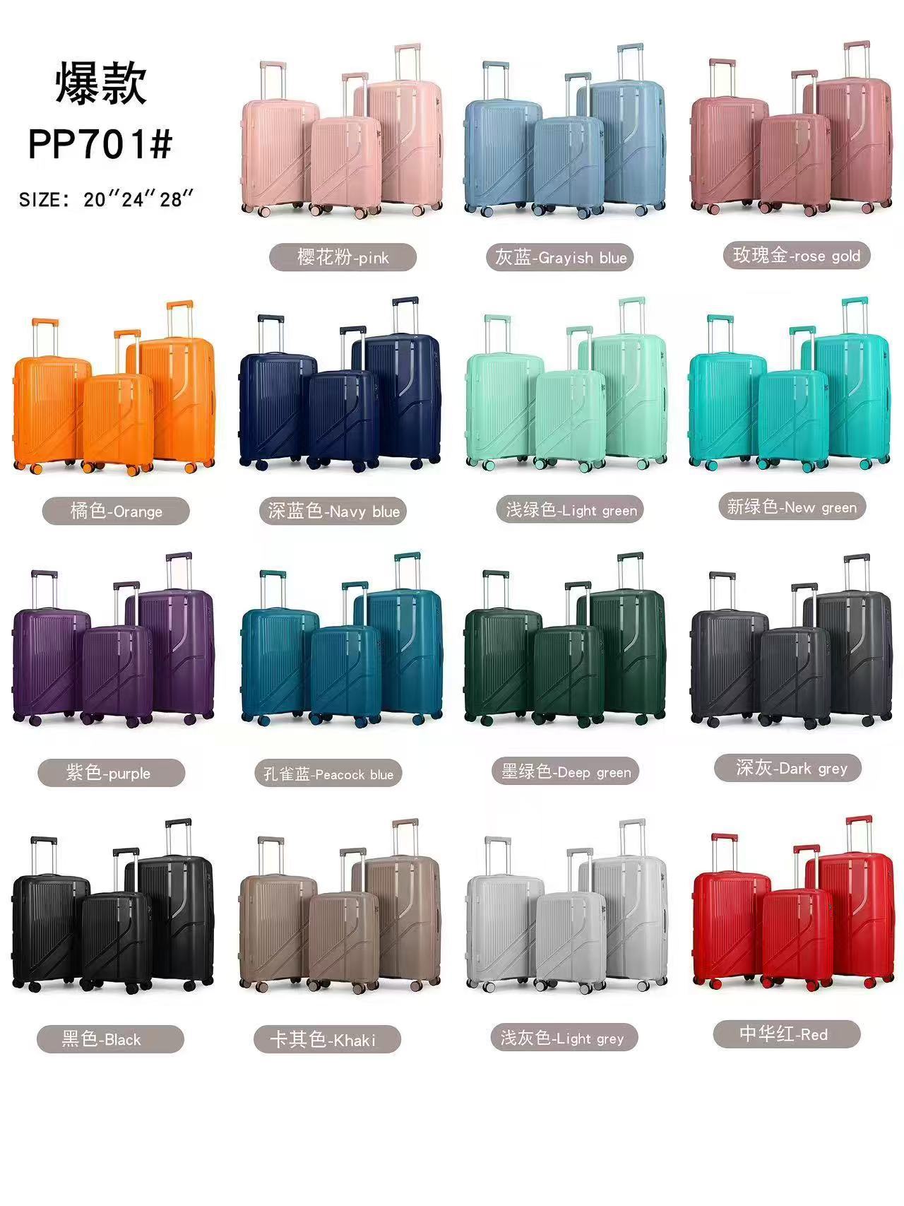 対外貿易メーカーは国境を越えたPPスーツケースの3点セットを直接販売しています