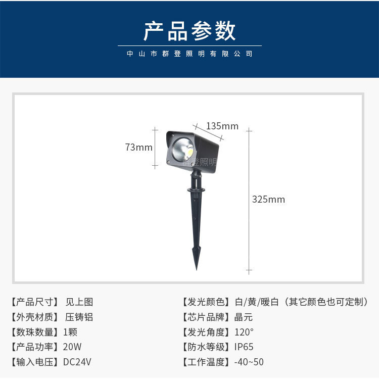 ソースメーカー文化観光景観芝生 LED ツリーライト投光器 COB ブラックスクエア 20 ワット高輝度グラウンドプラグライト
