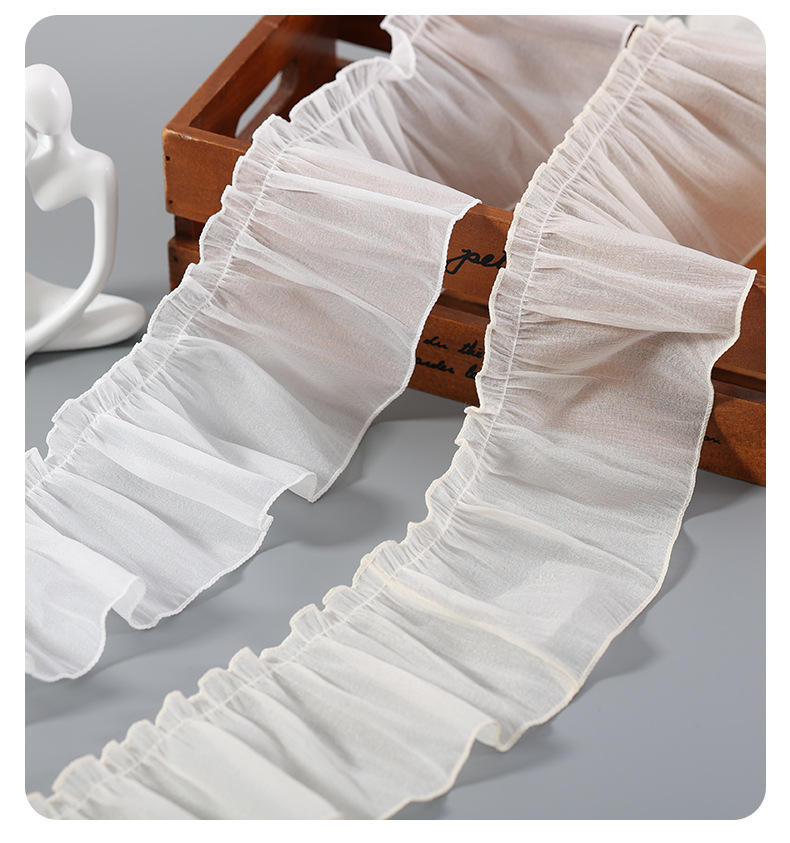新商品の米杏色のシフォンのしわのレースのDIY服のスカートの袖口の織物の補助材料のメーカーは直接販売します。