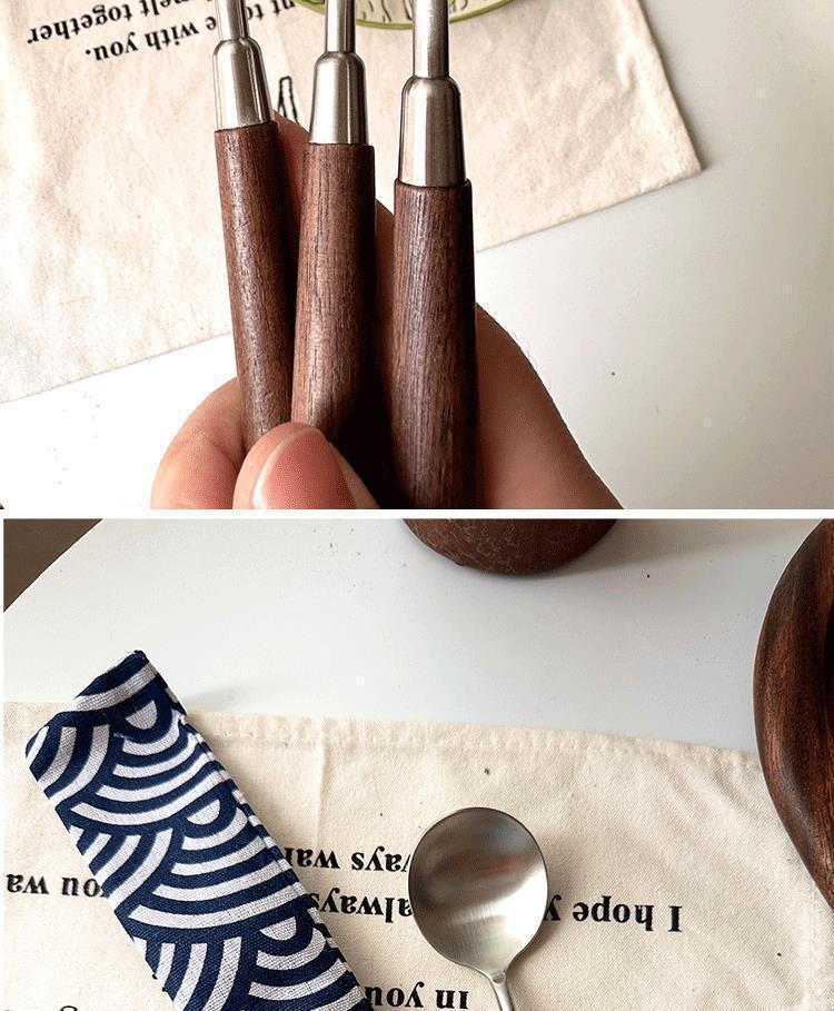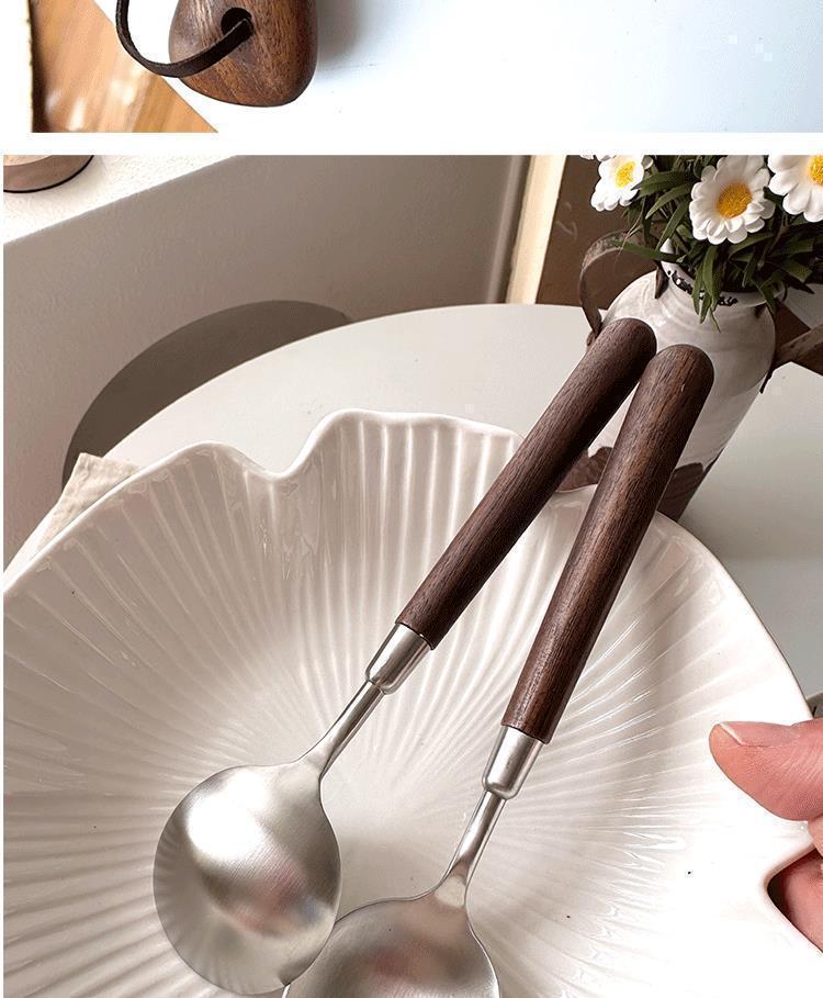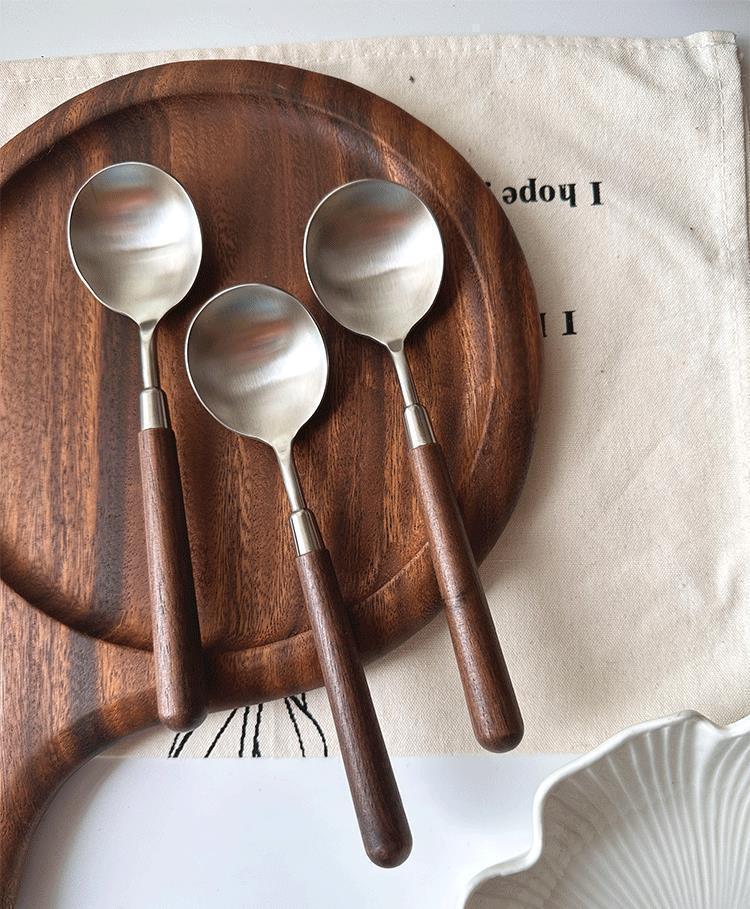 くるみの木目のスプーンの木の柄のスプーンのステンレスの家庭用の食事のスプーンをまねてかゆの大きいスプーンのステンレスの小さい丸いスプーンを飲みます。