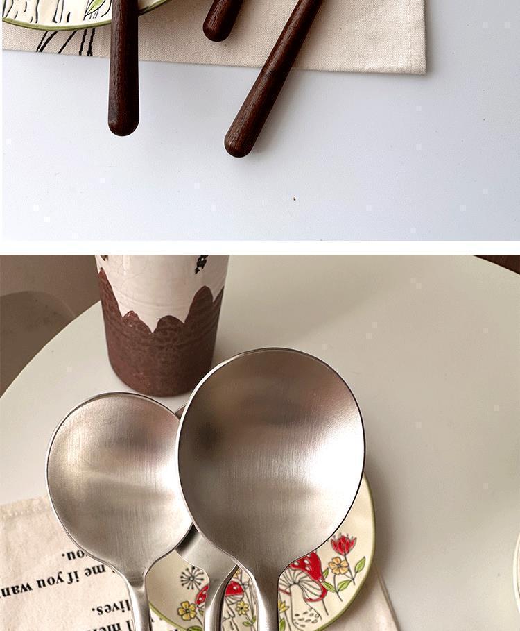 ステンレス鋼模造クルミハンドルラウンドスプーンプラスチックハンドルラウンドスプーンレストランライススプーン家庭用ライススプーンスープスプーンデザートスプーン
