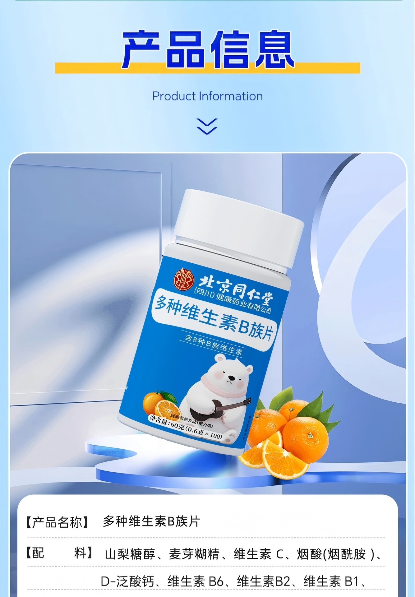 北京銅仁堂マルチビタミンBチュアブル錠ビタミンBスイートオレンジフレーバータブレットキャンディ在庫多数