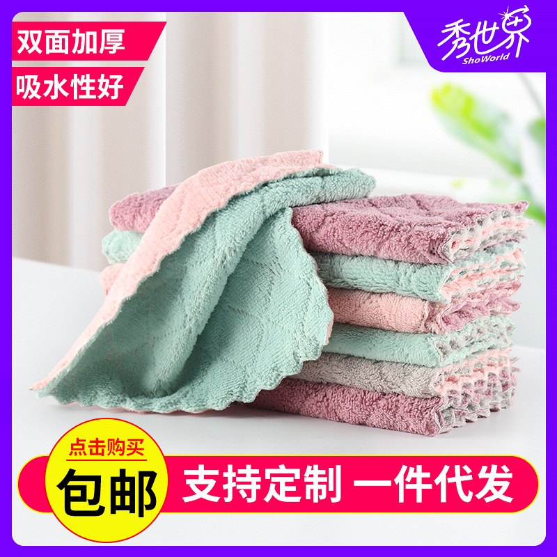 両面の2色の厚手の皿洗い布サンゴの綿布の清潔な布の台所の皿洗いタオルの代理