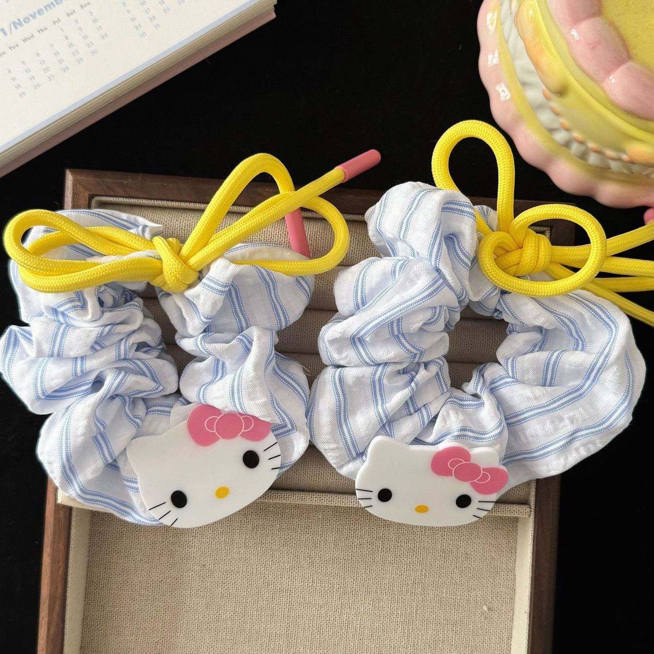 韩系KT猫咪蝴蝶结大肠圈发绳清爽蓝条纹大号发圈头绳丸子头皮筋