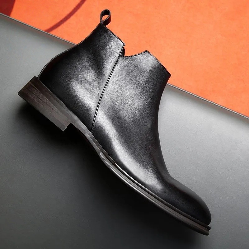 メンズチェルシーブーツビジネス正装本革マーチン革ブーツ手作りハイトップ革靴レトロ英倫ショートブーツ秋冬