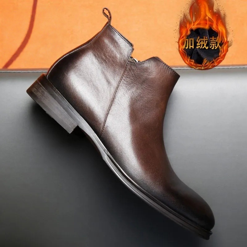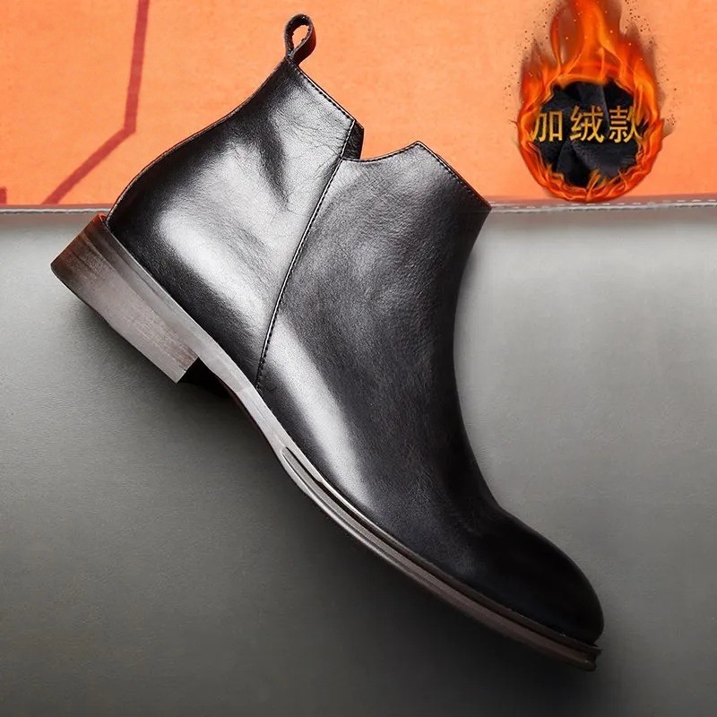 マーティンブーツ男性冬の本革英倫風チェルシー男性ブーツとベルベットのブーツのファッション