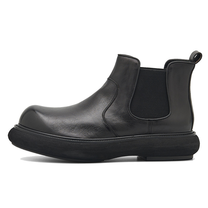 2025秋冬英伦复古切尔西靴男厚底休闲短皮靴一脚蹬高帮马丁靴