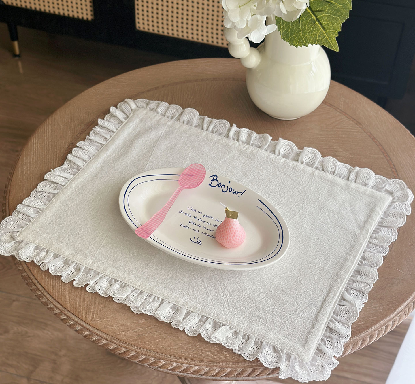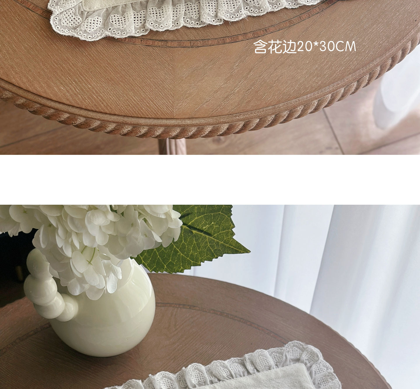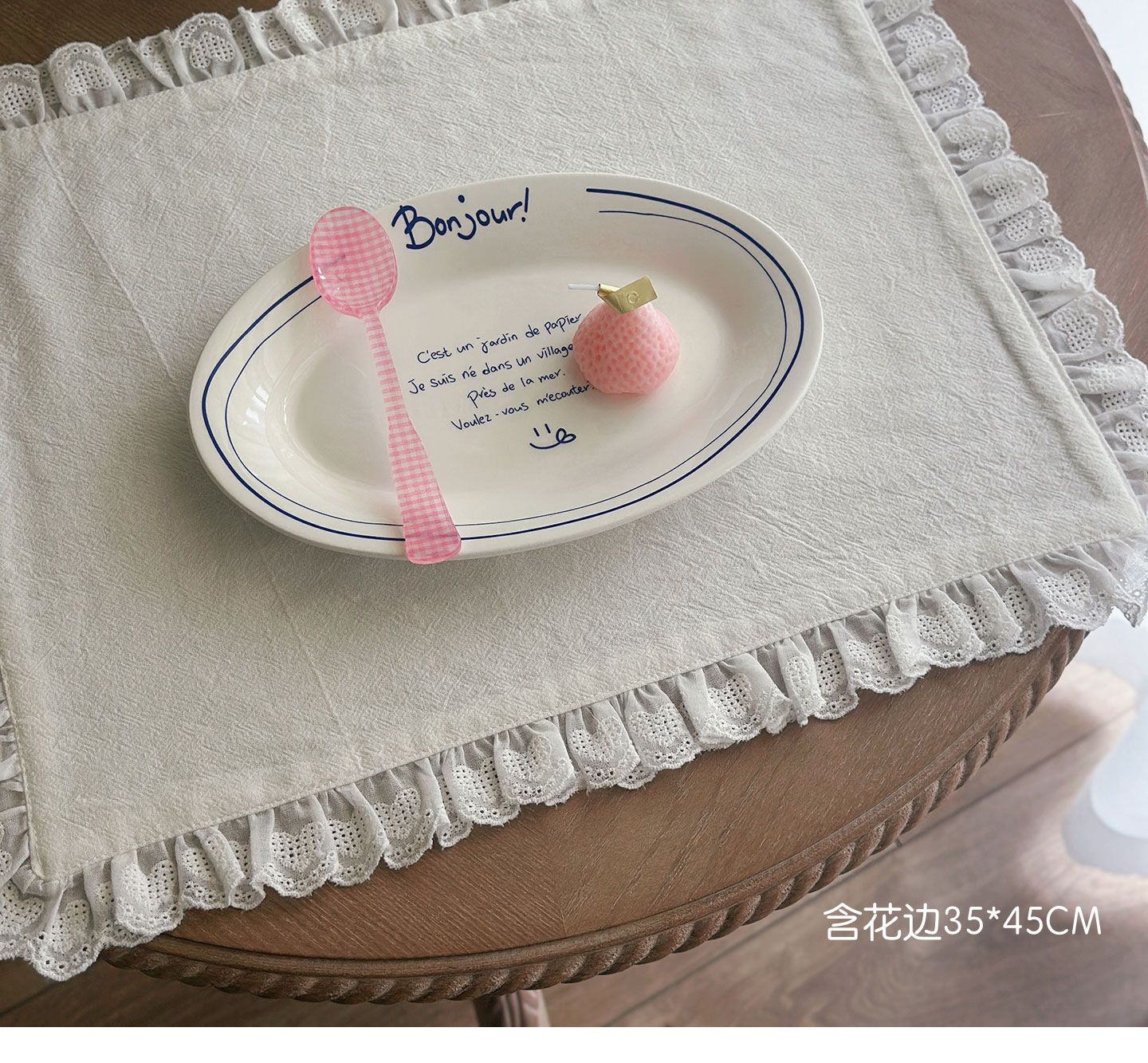 フレンチレトロプレースマットコットンとリネンインホワイトフリルダストカバーティーテーブルマットベーキンググルメ写真ナプキン