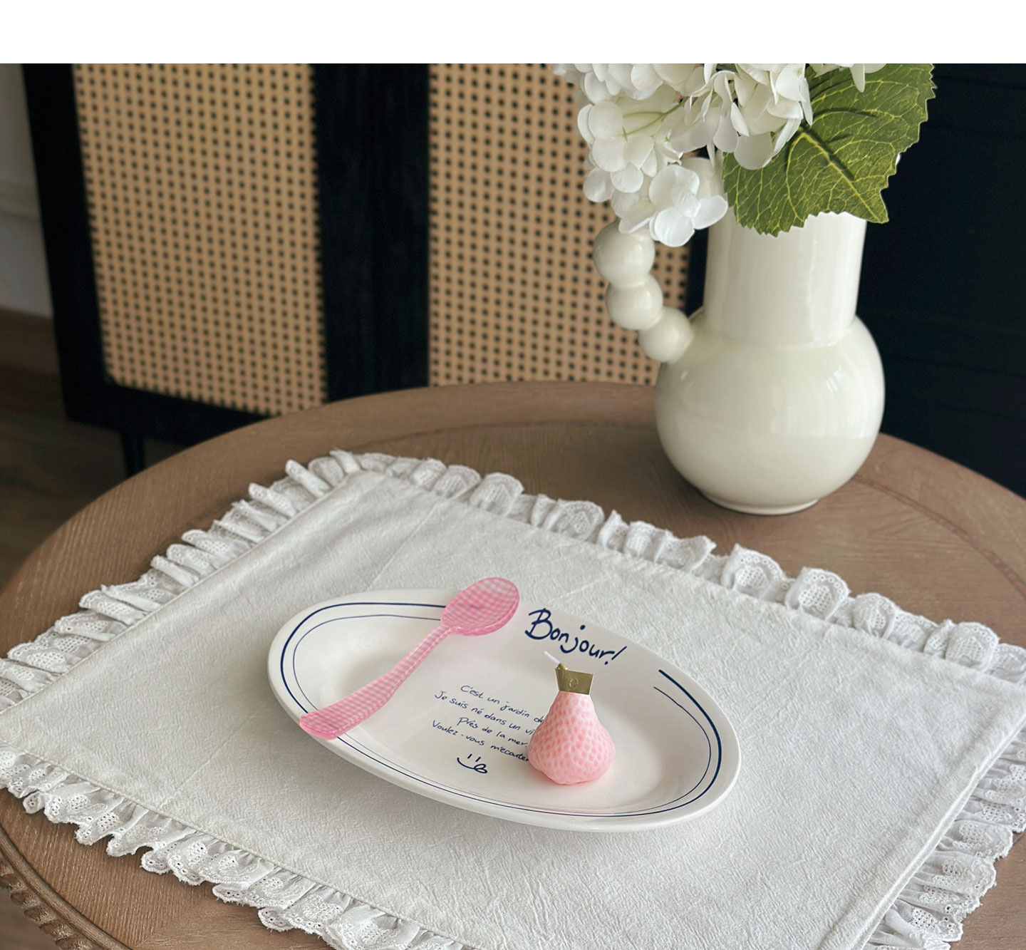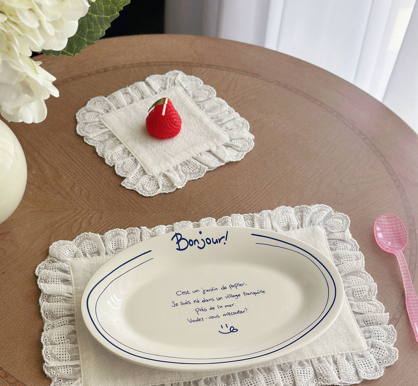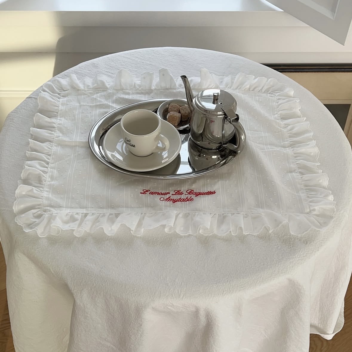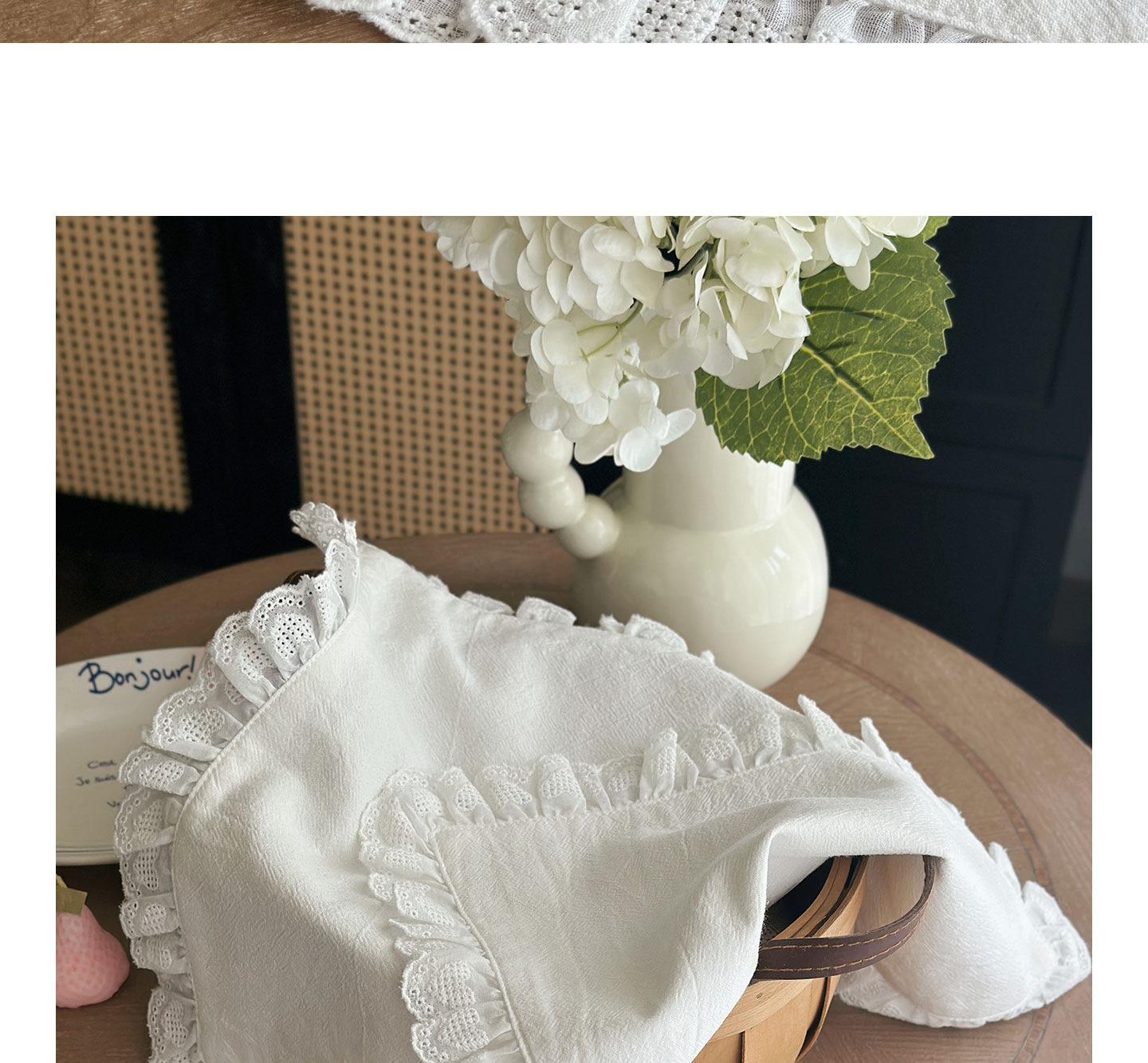 フレンチレトロプレースマットコットンとリネンインホワイトフリルダストカバーティーテーブルマットベーキンググルメ写真ナプキン