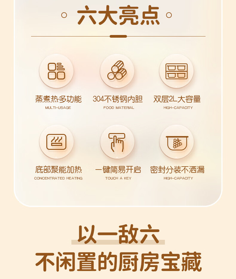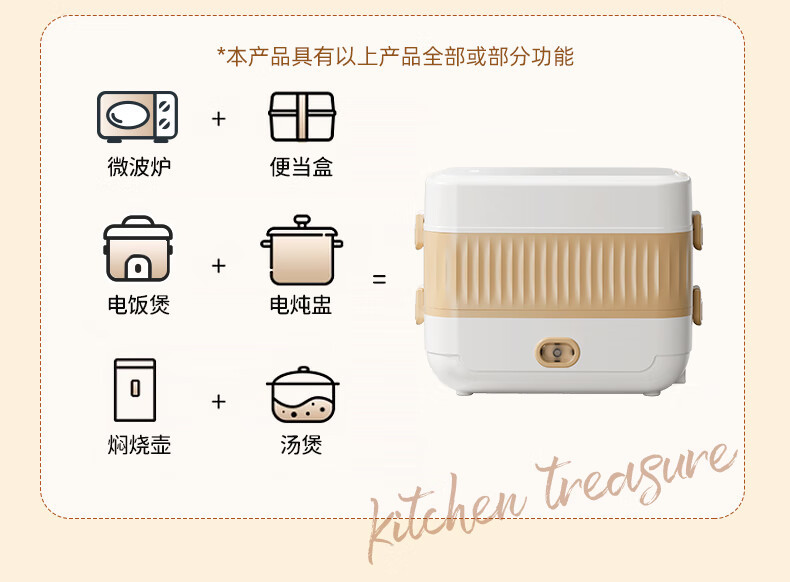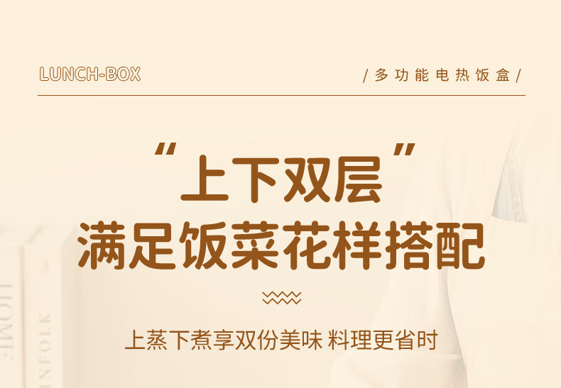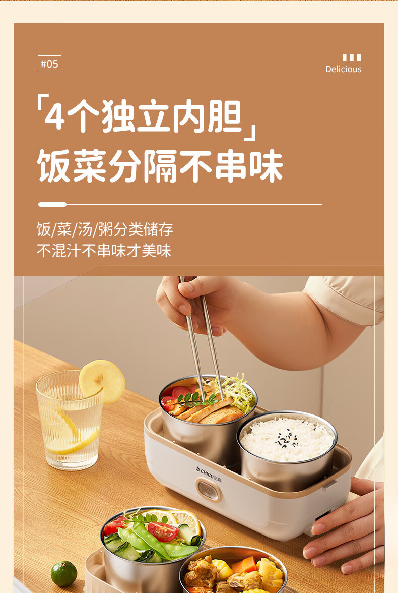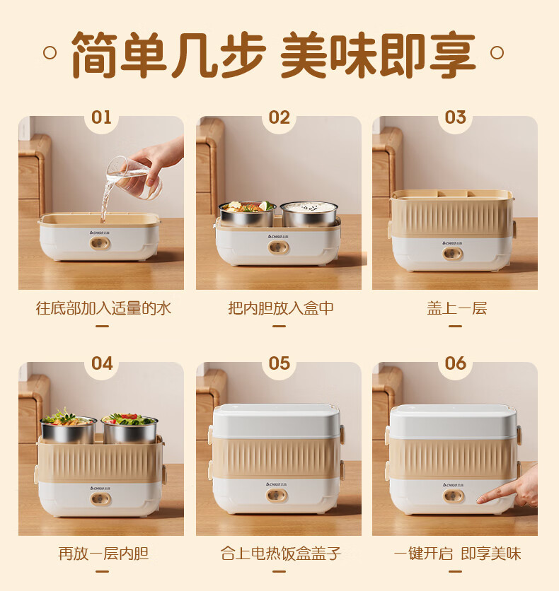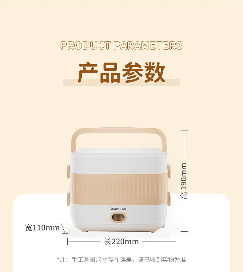 Chigo オフィスステンレス鋼電気弁当箱断熱加熱二層ミニポータブルハンドル電気弁当箱